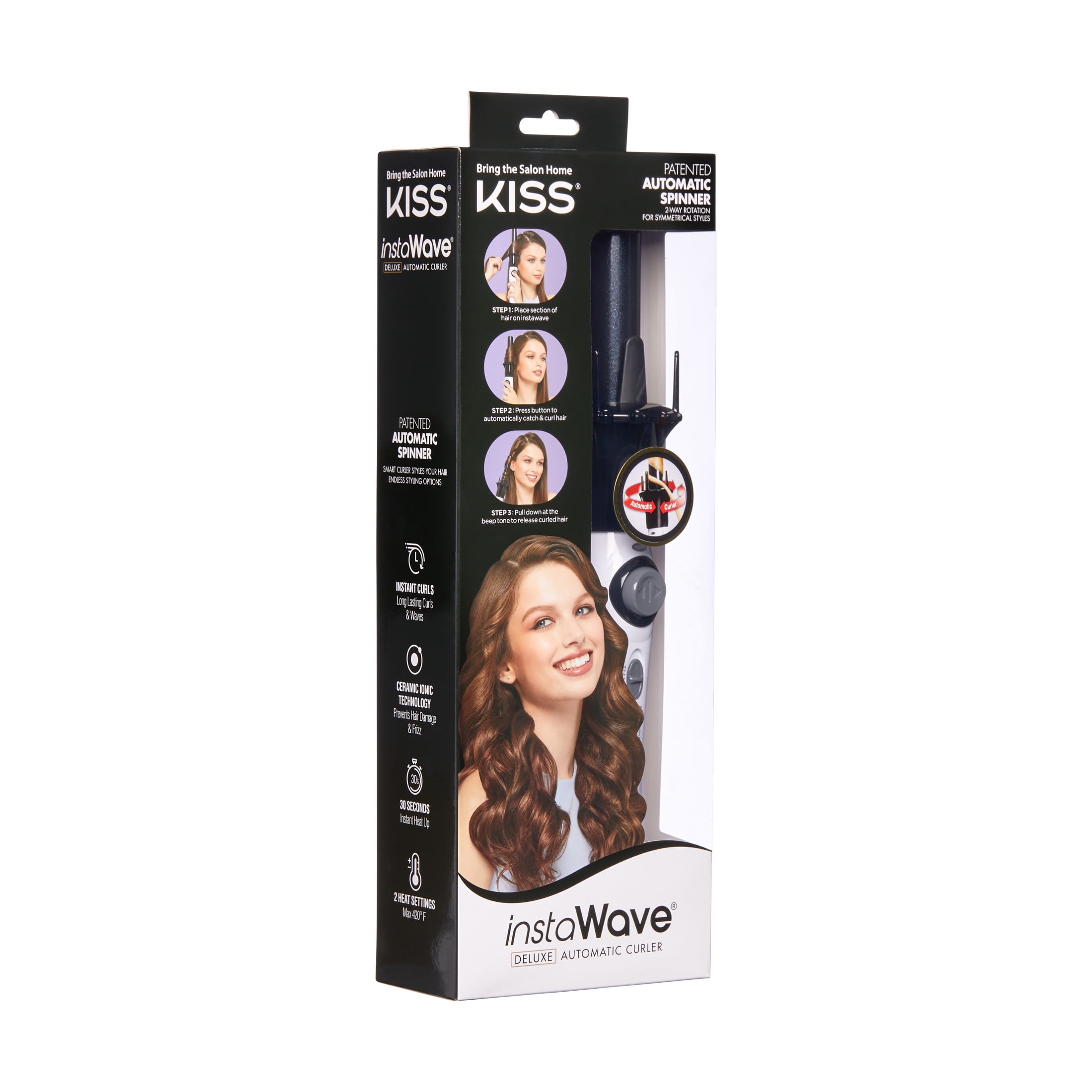 KISS Instawave Professional Ionic Ceramic Deluxe Automatic Hair Curler, Black & White