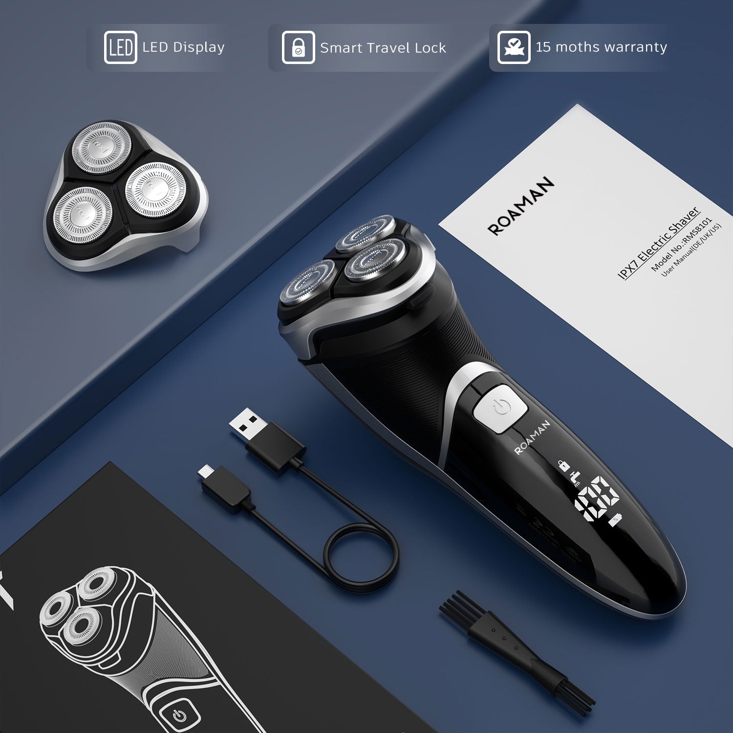 $68.79Original price was: $68.79.$34.39Current price is: $34.39.【3D Floating Shaving Head for Precision】Elevate your grooming game with our electric shaver’s advanced 3D floating razor head. Combined with precision blade technology and a high-speed motor, this electric razor effortlessly glides along the contours of your face, neck, and even chin for a fast, efficient shave. 【IPX7 Waterproof, Wet & Dry Use】IPX7 the whole-body washable design for easy cleaning and safe to use while showering. And it can easily adapt to either shaving foam or gel for a smoother and closer shaving experience. Besides, it has passed IPX7 waterproof test, which is very convenient to clean it under running water. 【Quick Charging & LED Display 】The electric shaver with built-in LED Display will remind you about the available use time, charging status, and travel lock condition. Easily active smart safety lock by continously press on/off button for 3 seconds to avoid unexpected starting up on a trip. Charge up in just 1 hours for a whopping 120 minutes of shaving time.(Charging plug included) 【One-Click Pop-Up Trimmer】Achieve precise grooming effortlessly with our electric shaver’s built-in pop-up trimmer. Ideal for trimming sideburns, beards, or any facial hairstyle. Just one click and you’re ready to perfect your look. Don’t miss out on the ultimate tool for facial hair finesse. 【The Perfect Gift】Elevate special occasions with the grooming gift. Our electric shaver boasts a sleek design that’s perfect for gifting to fathers, husbands, boyfriends, and sons on any special day. If you’re not completely satisfied, our dedicated team is just a message away to make it right.