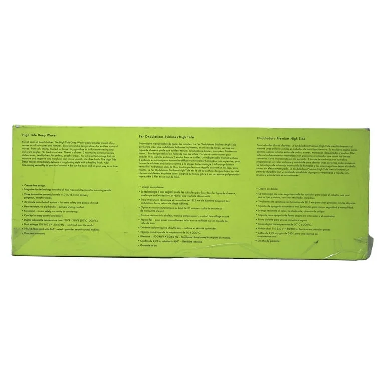 $85.99For all kinds of beach babes. The High Tide Deep Waver easily creates instant, shiny waves on all hair types and textures. Exclusive design allows for endless styles of waves – from soft, strong, tousled or loose. Say goodbye to bulk maneuvering and awkward angles. Three’s a charm–3 tourmaline ceramic barrels, each measuring 0.7 in / 18.5mm, deliver even, healthy heat for perfect, beachy waves.