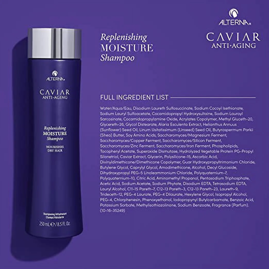 $63.64Alterna’s Caviar Anti-Aging Replenishing Moisture Shampoo provides hydration to moisture-starved hair and protects from future damage. This hydrating, sulfate and paraben free shampoo restores moisture while protecting hair from color fade, daily stresses and future damage. Rich daily conditioner that replenishes and seals in moisture while protecting hair from daily color fade, stresses, and future damage. Transforms brittle, dull hair into strong, healthy, younger-looking hair.