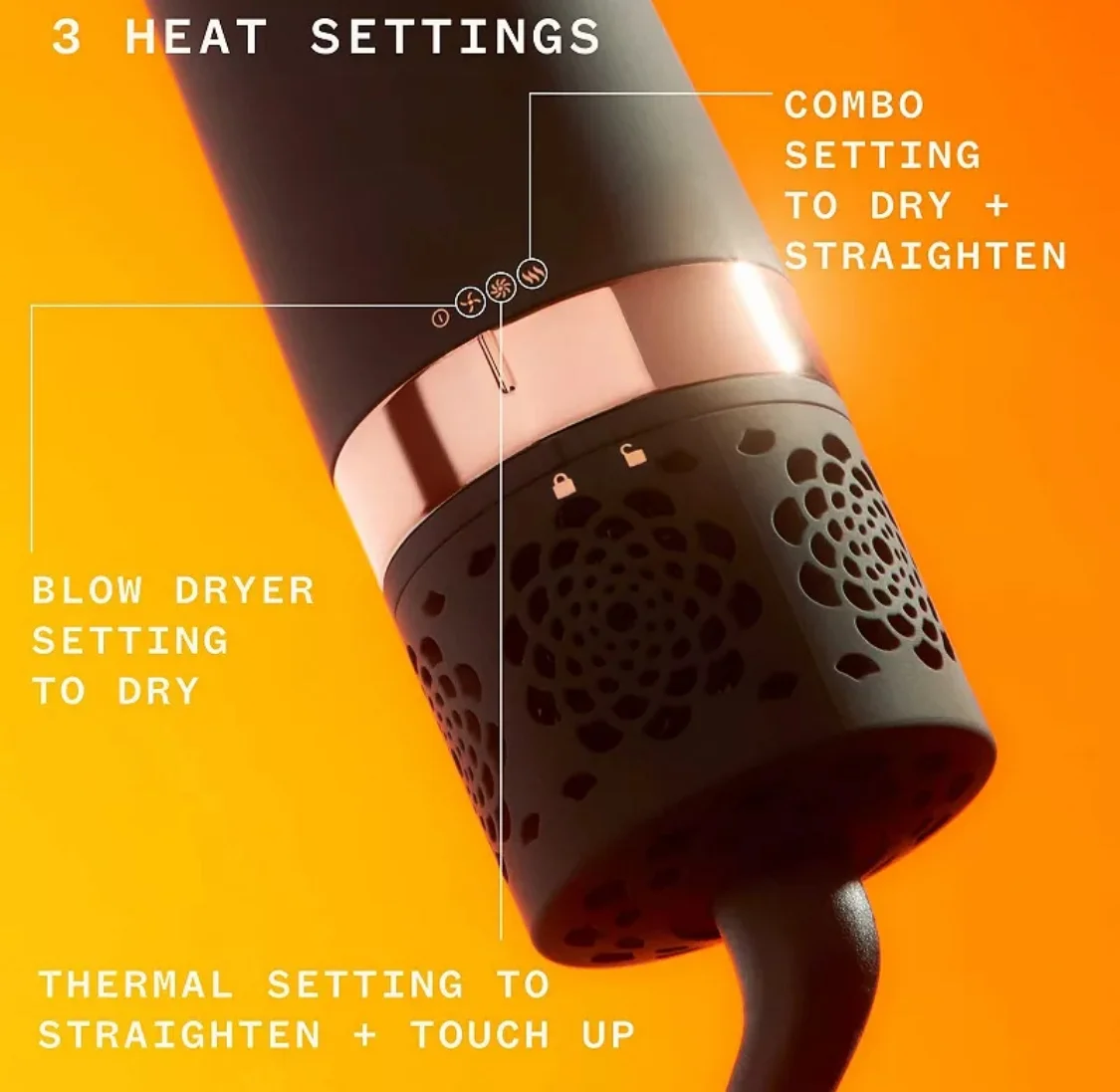 $93.74Original price was: $93.74.$60.09Current price is: $60.09.A two-in-one blow-dryer straightening brush that simultaneously takes hair from just washed and damp to dry and sleek, all-in-one tool. This multitasking, two-in-one blow dryer straightening brush has three settings (blow-dryer, thermal brush, and combo) so you can customize your style. The easy-to-use tool styles hair three times faster, leaves hair smoother and shinier, and reduces frizz for hair that is as smooth as a double agent. The blow-dryer setting is used to dry damp hair or to retouch your blowout. The combo blow-dryer and thermal straightening brush dries damp hair while simultaneously straightening it into a smooth and sleek style. The thermal straightening brush setting is for dry hair only to straighten or touch up a blowout.