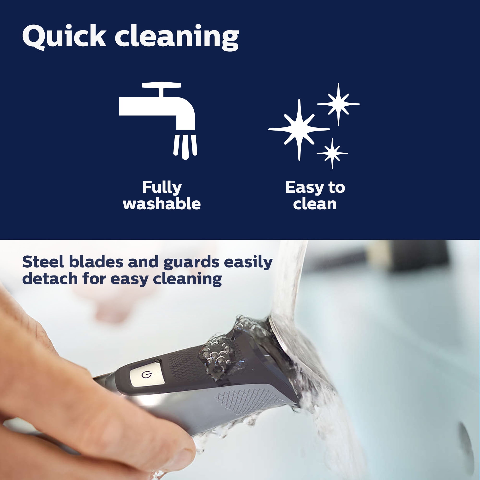 $38.69Trim, edge and shave any length of hair Designed to cut hair, not skin Philips OneBlade Face + Body trims, edges and shaves any length of hair. You get a blade for your face, and one with a skin guard for your body. Forget about using multiple tools. OneBlade does it all. Comfortable shave Unique OneBlade technology Shave it off Guards against nicks on sensitive areas Sharp edges Edge it up Create precise edges and sharp lines Even trim Trim it down Stubble combs for more choices Easily trim in any direction Easy to use Each blade lasts 4 months Use wet or dry Charge up and go