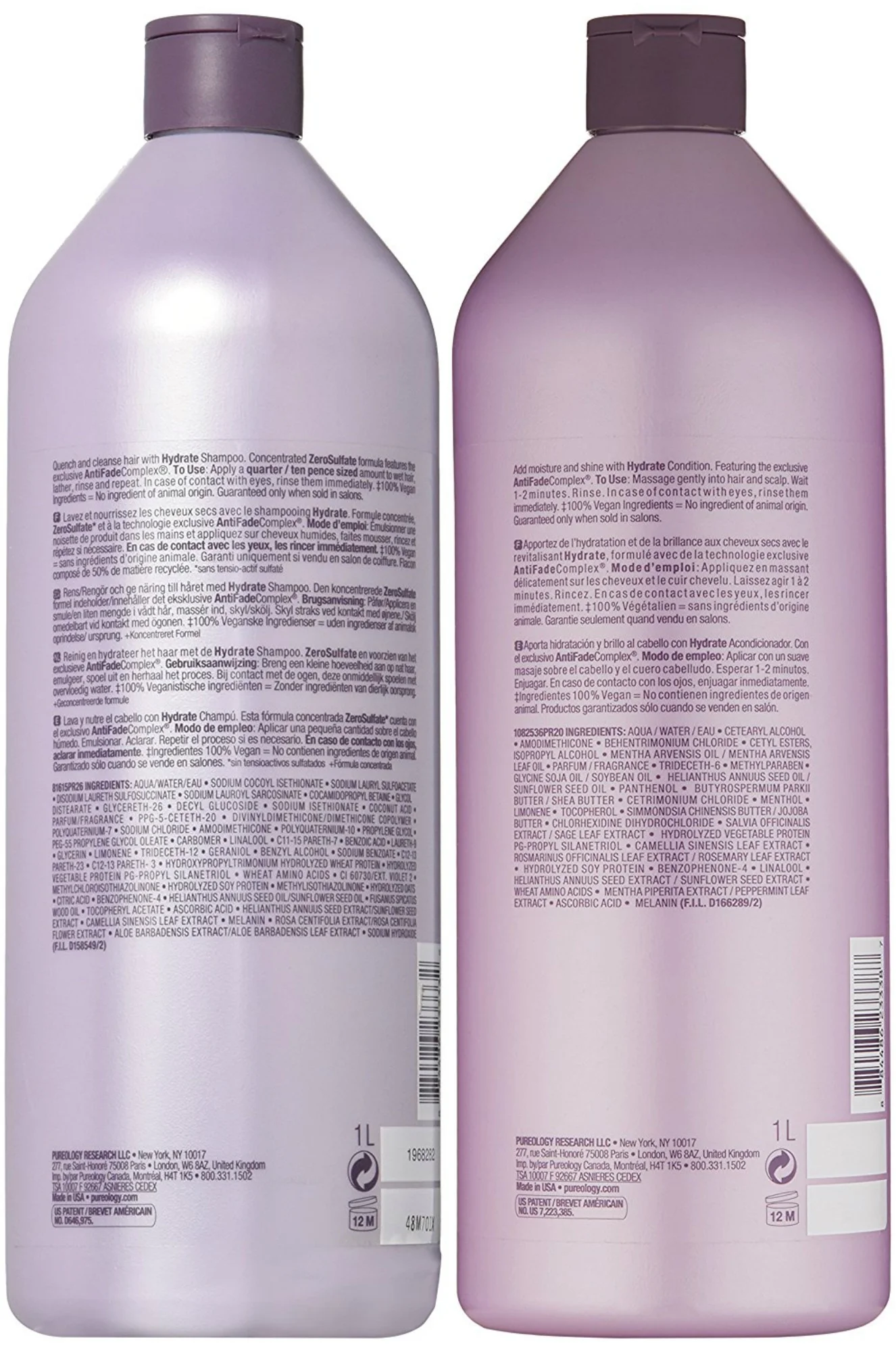 $56.33Original price was: $56.33.$45.29Current price is: $45.29.Pureology Hydrate Shampoo is an essential for color treated hair. Does not strip color. This advanced formula is free of any nasty carcinogenic color stripping sulfates. This high lather, quick rinse, exceptionally mild luxury formula preserves and protects hair while it wraps you in an indulgent aromatherapy fragrance experience.100% vegan. Ingredients- AQUA/WATER/EAU, CETEARYL ALCOHOL, AMODIMETHICONE, BEHENTRIMONIUM CHLORIDE, CETYL ESTERS, ISOPROPYL ALCOHOL, MENTHA ARVENSIS OIL / MENTHA ARVENSIS LEAF OIL, PARFUM / FRAGRANCE, TRIDECETH-6, METHYLPARABEN, GLYCINE SOJA OIL / SOYBEAN OIL, HELIANTHUS ANNUUS SEED OIL / SUNFLOWER SEED OIL, PANTHENOL, BUTYROSPERMUM PARKII BUTTER / SHEA BUTTER, CETRIMONIUM CHLORIDE, MENTHOL, LIMONENE, TOCOPHEROL, SIMMONDSIA CHINENSIS BUTTER / JOJOBA BUTTER, CHLORHEXIDINE DIHYDROCHLORIDE, SALVIA OFFICINALIS EXTRACT / SAGE LEAF EXTRACT, HYDROLYZED VEGETABLE PROTEIN PG-PROPYL SILANETRIOL, CAMELLIA SINENSIS LEAF EXTRACT, ROSMARINUS OFFICINALIS LEAF EXTRACT / ROSEMARY LEAF EXTRACT, HYDROLYZED SOY PROTEIN, BENZOPHENONE-4, LINALOOL, HELIANTHUS ANNUUS SEED EXTRACT / SUNFLOWER SEED EXTRACT, WHEAT AMINO ACIDS, MENTHA PIPERITA EXTRACT / PEPPERMINT LEAF EXTRACT, ASCORBIC ACID, MELANIN