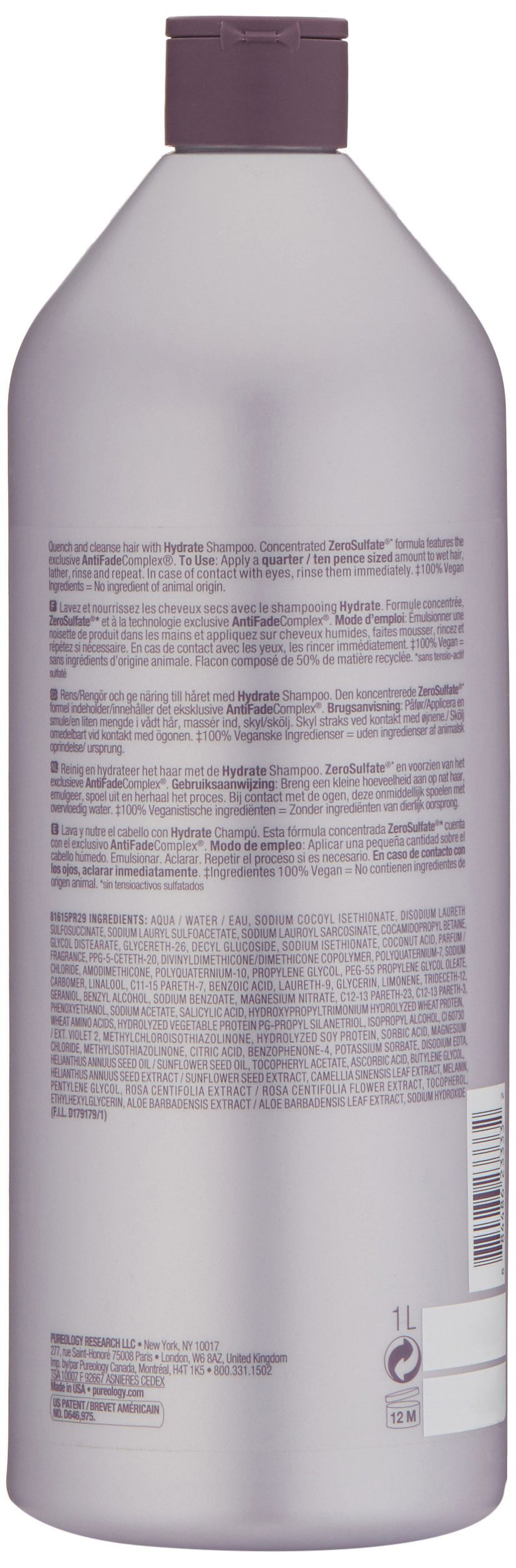 $45.29Pureology Hydrate Shampoo is essential for color-treated hair. Does not strip color. This advanced formula is free of any nasty carcinogenic color-stripping sulfates. This high lather, quick rinse, exceptionally mild luxury formula preserves and protects hair while it wraps you in an indulgent aromatherapy fragrance experience. 100% vegan. Pureology hydrate shampoo is essential for color-treated hair. Does not strip color.