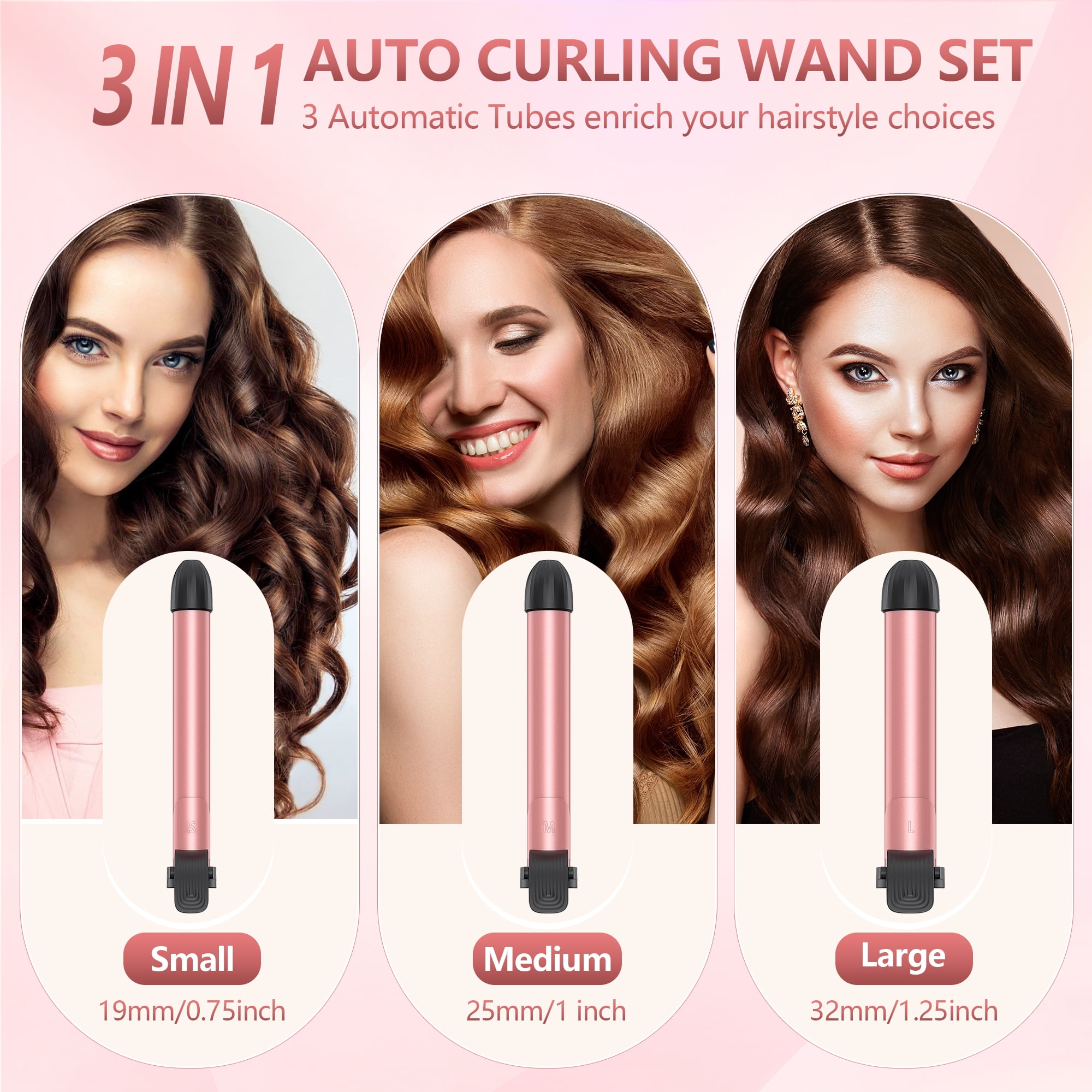 $120.39Original price was: $120.39.$53.74Current price is: $53.74.The RACCOMB 3 in 1 Auto Rotating Curling Iron, a professional-grade tool designed for beauty and convenience. This innovative Automatic Curling Iron features an auto dual direction rotation function activated by simple arrow buttons, ensuring flawless curls on both sides of your hair with ease. Simply press the home button to restore equilibrium, ensuring consistent results every time. The 0.75inch, 1inch, 1.25 inch Diameter ceramic-coated barrel of auto hair curling wand, quickly heats up for reducing damage while curling, and offers 4 adjustable temperature settings from 320°F to 430°F, catering to all hair types and styles. Achieve stunning curls and waves in just 10 minutes. With auto-shutoff after 45 minutes, you can enjoy peace of mind during use. It is the best gift of mother’s Day.