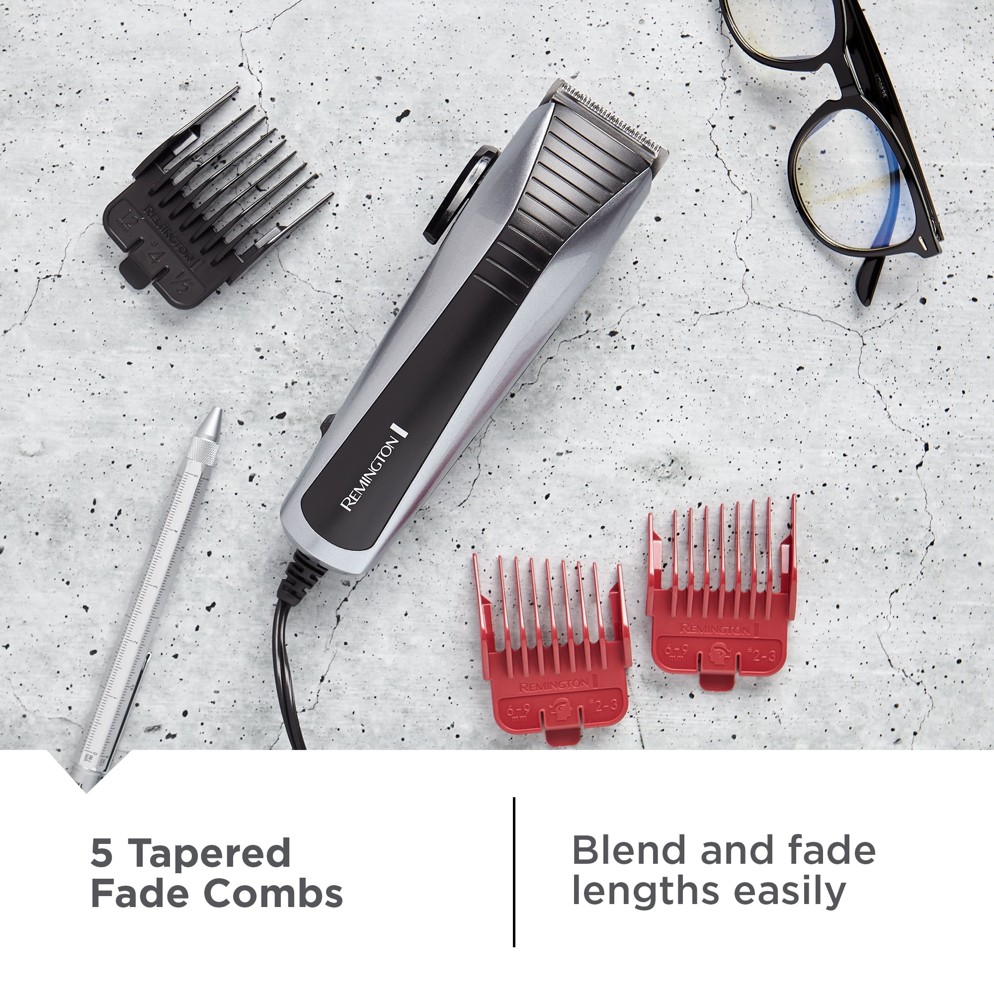 REMINGTON Easy Fade Hair Clippers for Men with Tapered and Fixed Combs and Travel Case, Black