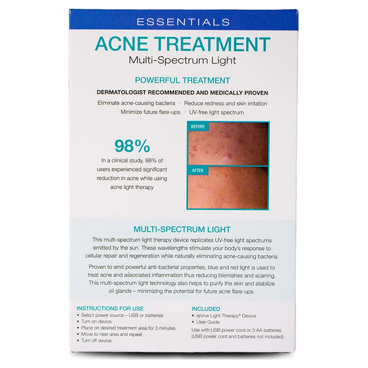 $50.74Original price was: $50.74.$40.59Current price is: $40.59.Our reVive Light Therapy® Essentials for Acne destroys acne-causing bacteria fast. You’ll see results within days! The Essentials Acne acts as an acne spot-treatment device using non-UV blue light. Blue light reaches deeper into your skin and pore layers than topical acne treatments, and the light destroys acne-causing bacteria while reducing sebaceous glands’ oil production. Red lights minimize acne- related inflammation, a primary cause of scarring . The result is clean, clear skin with a healthier appearance. In our consumer study, 100% of users experienced a significant reduction in acne when using blue-light therapy. Lightweight at only 0.4 lbs, Battery powered and requires 2 AA Sized batteries.