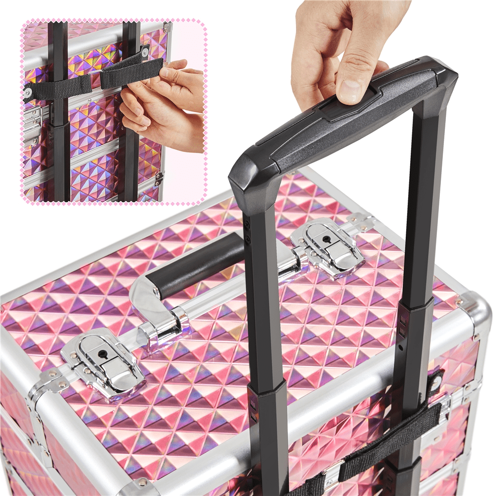 Renwick 4-In-1 Aluminum Rolling Makeup Train Case, Glitter Pink