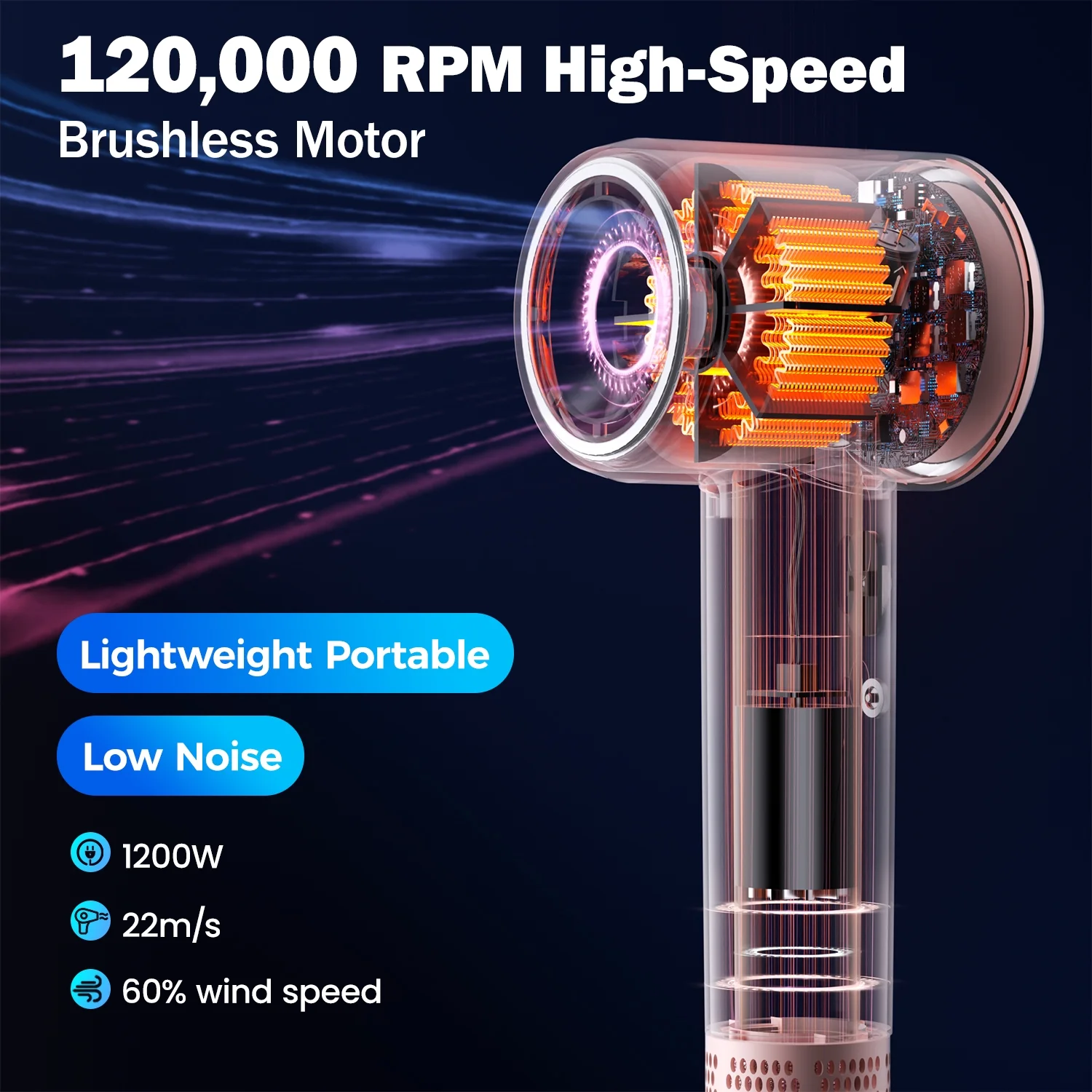 $25.79Original price was: $25.79.$23.21Current price is: $23.21.Experience quick and efficient hair drying with Vinci high-speed brushless motor hair dryer, reaching an impressive 120,000 rpm for a strong airflow of 22m/s. The negative ion technology releases up to 100 million ions, locking in moisture and reducing static, providing a healthy shine to your hair. With intelligent temperature control and 8 drying modes, including 4 temperatures and 2 speeds, you can achieve the perfect hairstyle while protecting your hair from extreme heat. The 3-color LED ring light indicates temperature settings, and the low noise level of 65dB ensures a peaceful environment. This portable travel companion features a 360° rotating magnetic nozzle, making styling effortless. The hair dryer is designed with enhanced safety features, including a standard ETL approved US ALCI safety plug, a tight filter to prevent hair entanglement, and a self-cleaning function for easy maintenance. Enjoy salon-quality results at home or on the go with our ergonomic and versatile hair dryer.