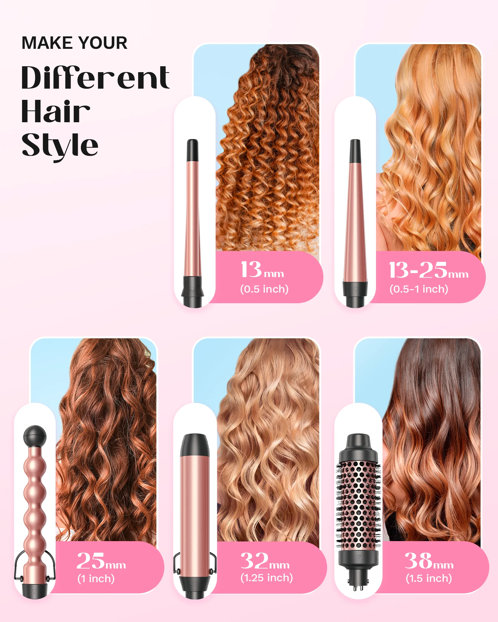 Wavytalk 5 in 1 Curling Iron Set with 1.5inch Thermal Brush, 4 Interchangeable Curling Wand