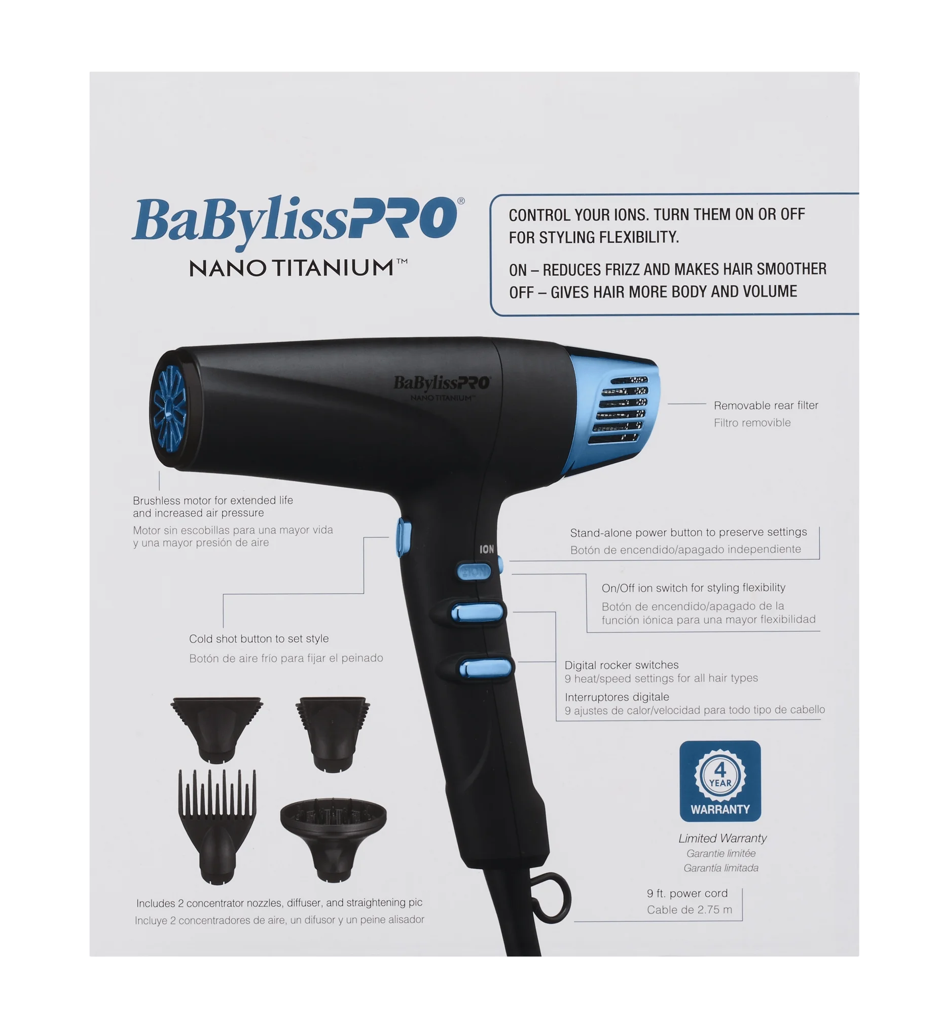 BaBylissPRO Nano Titanium Matte Black High-Speed Dual Ionic Dryer