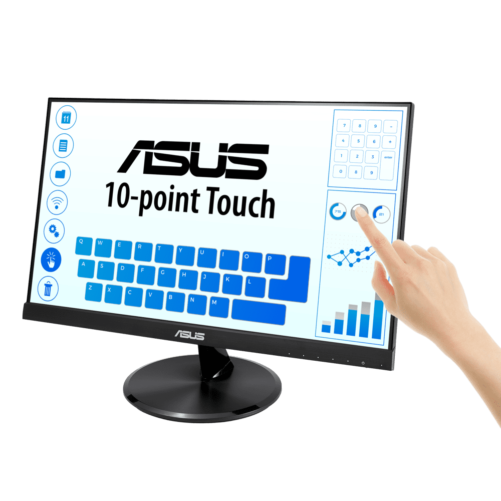$214.14Original price was: $214.14.$190.39Current price is: $190.39.ASUS VT229H Touch Monitor – 21.5″ FHD (1920×1080), 10-point Touch, IPS, 178° Wide Viewing Angle, Frameless, Flicker free, Low Blue Light, HDMI, 7H Hardness 21.5″ Full HD IPS technology with stunningly wide 178° viewing angles 10-point multi-touch capacity featuring 7H hardness screen delivers smooth and durable touch experience. Windows 10 compliance Its frameless design makes it perfect for almost-seamless multi-display setups ASUS Eye Care monitors feature TÜV Rheinland-certified Flicker-free and Low Blue Light technologies to ensure a comfortable viewing experience ASUS VT229H Multi-touch MONITORBeauty at Your Fingertips 10-Point Multi-touch – An Incredibly Intuitive Touch Experience The ASUS VT229H touchscreen monitor combines 10-point multi-touch capability with superb image quality, flexible connectivity, durability and great ergonomics. The precise and accurate multi-touch display featuring 7H hardness – allowing up to 10 simultaneous touches – is optimized for use with Windows 10, allowing you to work smarter and more efficiently, as well as perfect for public usage with protection and durability. VT229H has passed the tests and been confirmed that it has best compatibility and reliability with Windows10 operating system. Ensuring home and business users of Microsoft’s new operating system can benefit from ASUS Touch Monitor. Simply tap, drag, pinch, zoom or spin with your fingers for an amazingly natural and effortless touch experience. All Windows 10 touch gestures can be used on the ASUS VT229H. Stunningly Vivid Display The ASUS VT229H has a 21.5-inch widescreen (16:9) display that delivers outstanding image quality thanks to Full HD 1920×1080 resolution and 178° IPS wide-viewing-angle panel. With a fast 5ms response time, you’ll get pin-sharp images for any kind of content. And you can also choose your preferred aspect ratio for scaling non-widescreen images -either 16:9 or 4:3 – via the ASUS Aspect ratio control. The Touchscreen Monitor That Gives You Much More To give you a truly vivid viewing experience, VT229H includes some of our special proprietary technologies, such as QuickFit Virtual Scale Scale and Splendid Video Intelligence Technologies. ASUS QuickFit Virtual Scale’s onscreen alignment grid overlay helps you align and preview actual-size photos and documents on screen prior to printing, making sure they print perfectly every time. Supporting Formats: Grid: Alignment Photos: 4″x6″, 3″x5″, 2″x2″ ASUS Splendid Video Intelligence Technology employs a color engine with eight preset modes. These allow you to adjust your display easily for the best color accuracy and image fidelity, depending on what kind of content is being displayed. You can access the presets via a designated hotkey. Perfect Comfort and Flexibility for Home and OfficeDesigned With You in Mind VT229H has multiple video connectors, including HDMI and VGA inputs, making it suitable for use anywhere, either in the home or at the office. VT229H features an elegant circular base with an ergonomically-designed tilting stand that lets you choose the ideal viewing position. The monitor is also VESA mount-compatible, making it easy to mount on a wall or monitor arm. Advanced power-saving features ensure low energy costs and maximum reliability, and it meets stringent environmental standards including RoHS, ENERGY STAR.