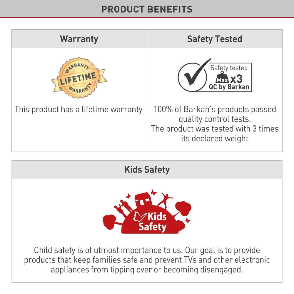 $32.40The Barkan 3400F is a Four – Movement TV Mount with rotate, fold, swivel, and tilt options. The mount fits both flat and curved screens 32 to 70 inches and weighs up to 88 lbs. The minimum distance between the mount and the wall is only 1.45 in., therefore, providing low profile mounting. The maximum distance is 21.1 in. It fits TVs with VESA standard (Bracket Mounting Holes Patterns) 100×100, 100×200, 200×100, 200×200, 300×300, 300×400, 400×300, 400×400, 600×400 mm and non VESA up to 600×400 mm. In order to offer a better point of view, the mount has three pivots: near the wall 180∞, foldable 360 &in fin;, swivel near the screen connection plate 180∞ , and also tool-free tilt from 0 till 10∞.