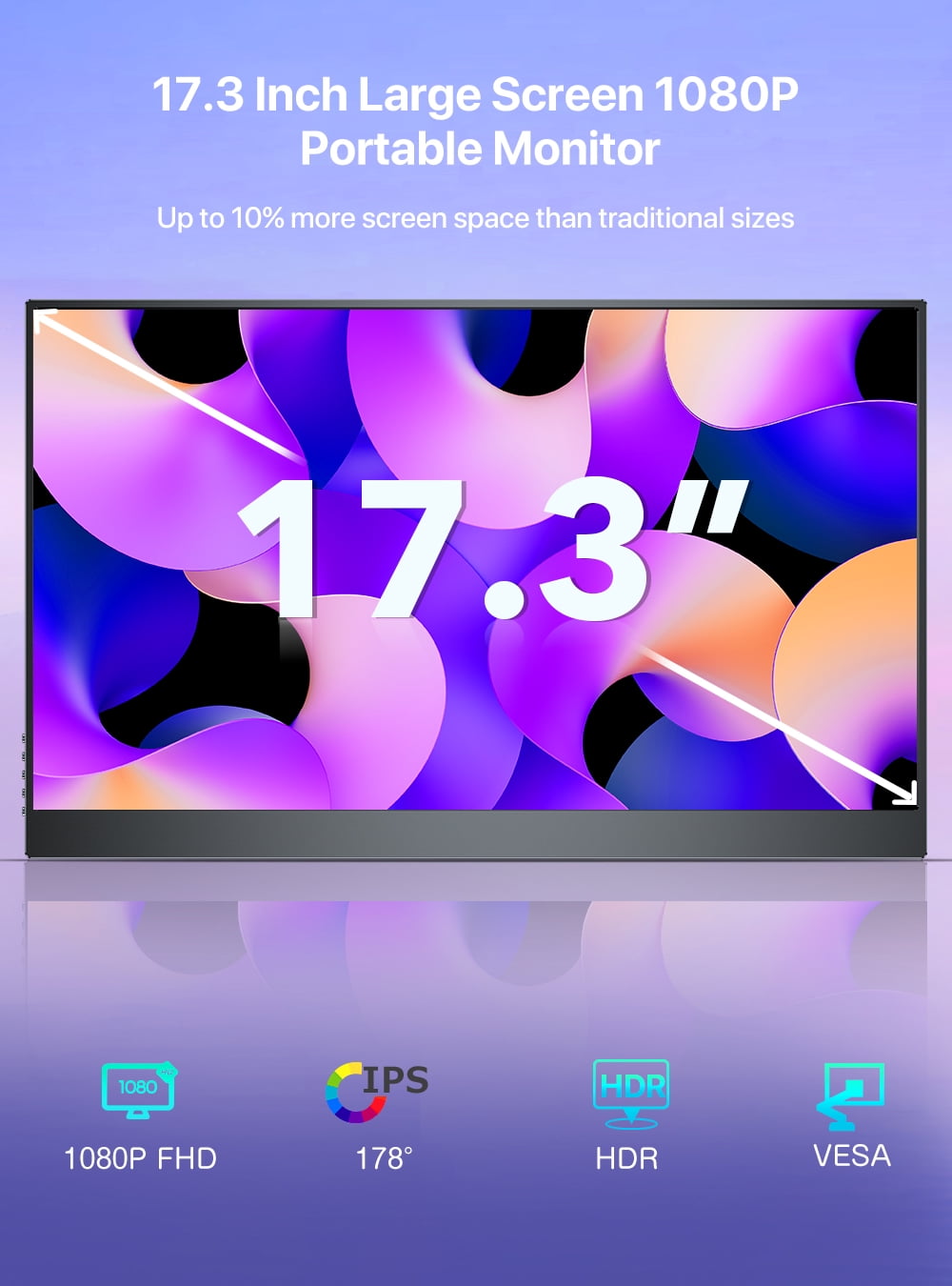 AZMKOO 17.3″ 1080P IPS Portable Computer Monitor, Black, VIPRB-17.3″