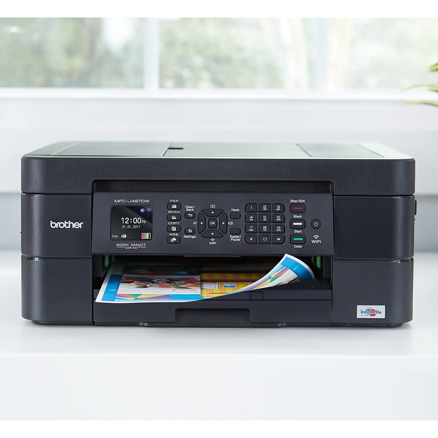 $156.52The Brother Work Smart MFC-J497DW Printer is easy to connect, compact, affordable and loaded with features and functionality to help boost productivity in your home, home office, dorm room or small office. This wireless color inkjet all-in-one delivers high-quality output, lets you reliably print, copy, scan and fax and enables wireless mobile device printing from your desktop, laptop, smartphone or tablet. Use the automatic document feeder and 100-sheet capacity paper tray for generous output without constant monitoring and help save paper with automatic duplex (2-sided) printing. Cloud connectivity lets you print-from and scan-to popular Cloud services directly from the printer.