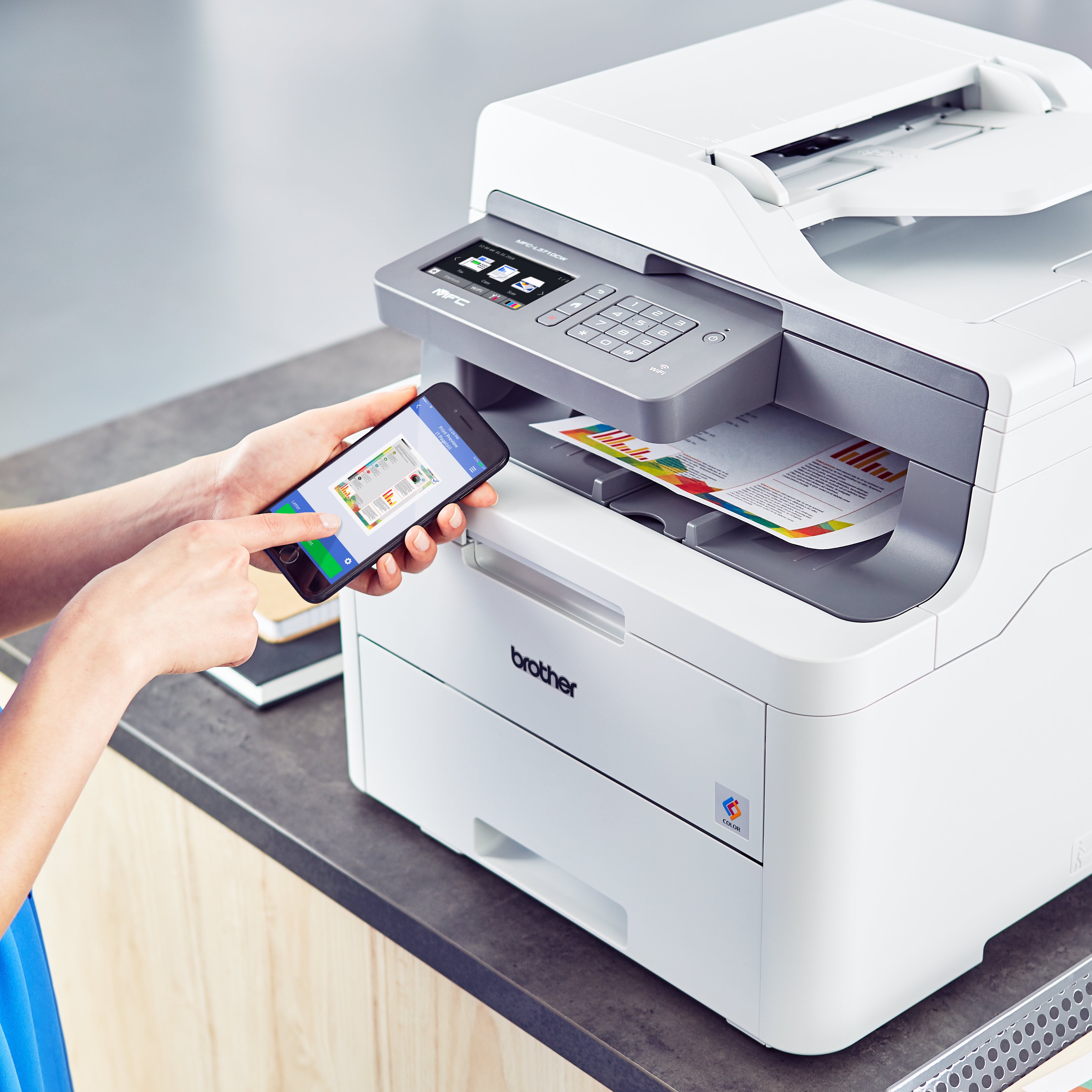 $842.80The reliable, robust Brother MFC-L3710CW compact digital color all-in-one printer is a great choice for the busy home or small office looking for laser printer performance. Affordably add color to your printing for vivid images on all your documents. Quick print speeds of up to 19ppm, scan speeds up to 29ipm black and 22ipm color plus robust construction ensures your all-in-one works as hard as you do. The compact design is ideal for smaller spaces. The MFC-L3710CW helps make color printing affordable for your home or small office looking for laser printer quality. Choose from Standard or High-Yield toner to help make color printing even more economical.