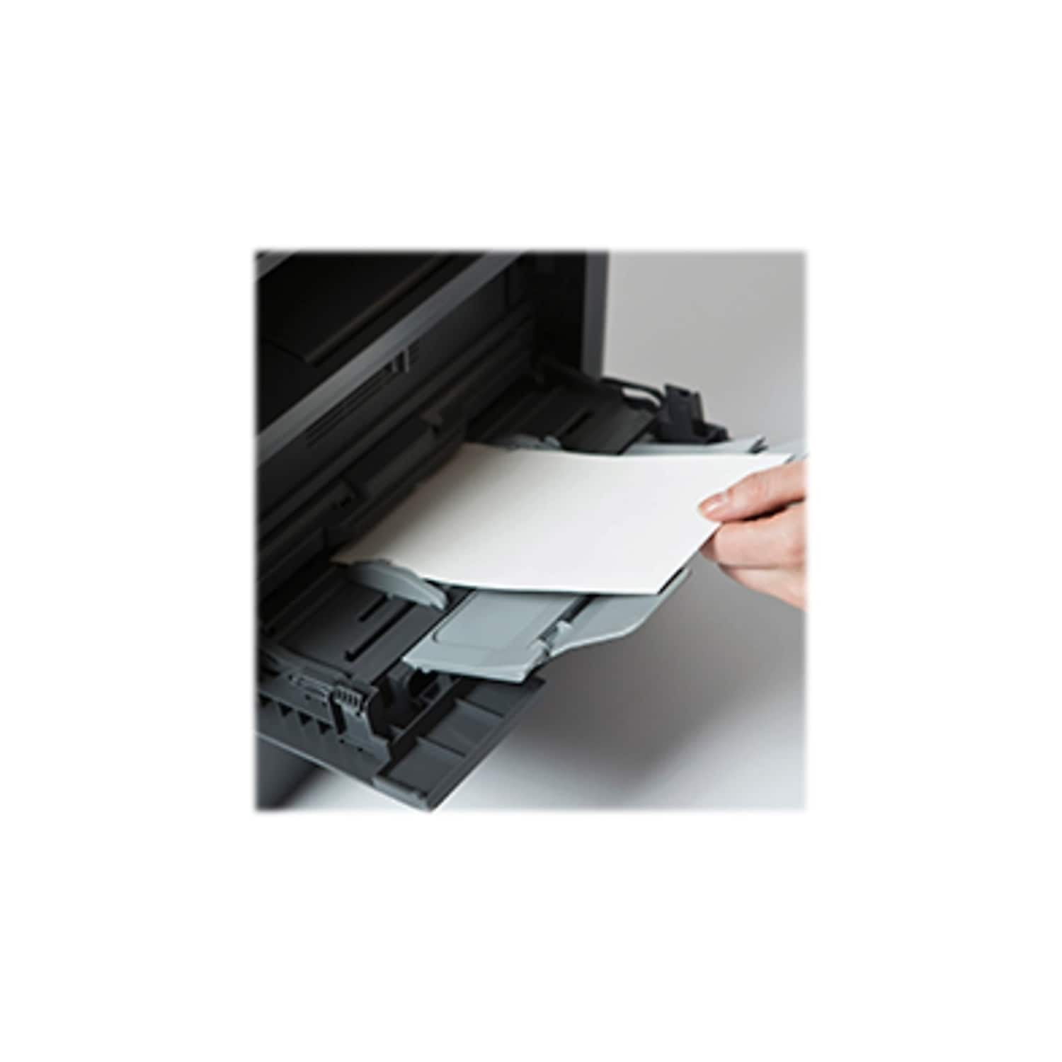 $629.43Original price was: $629.43.$372.96Current price is: $372.96.Print detailed two-sided documents from smartphones and cloud services with this Brother wireless monochrome multifunction laser printer. Make offices run at full efficiency with the superior performance of this wireless monochrome multifunction laser printer. Boasting print and copy speeds of up to 42 pages per minute (7) and a maximum resolution of 1200 x 1200 dpi, this multifunction printer quickly produces stacks of professional-quality documents. Integrated duplex printing helps conserve paper, while a 250-sheet input tray lets this multifunction printer finish large jobs without running out of paper. A built-in fax machine lets you send single- and double-sided documents to up to 350 recipients at once, ideal for quickly distributing important information. Featuring a built-in flatbed scanner and a 70-page duplex automatic document feeder, this multifunction printer digitizes double-sided documents in a single pass. This Brother laser printer has a 3.7-inch color touch screen that makes changing settings and starting jobs easy. • All-in-one printer gives you printing, copying, and scanning capabilities. • Laser printing with up to 1200 x 1200 dpi resolution ensures detailed, high-quality prints. • 42ppm speed in black/white (7) with a monthly duty cycle of 50,000 pages. • USB 2.0, LAN, and Wi-Fi connectivity to enhance productivity. • Dimensions: 19.1″H x 19.5″W x 16.8″D. • 300-sheet input capacity; types of media supported include envelopes, plain paper, and labels. • 800MHz processor and 512MB printer memory provide convenient, reliable printing of your most important documents. • Help save paper and create two-sided documents with automatic duplex printing with 70-sheet auto feeder. • Easily manage tasks with 3.7″ intuitive color touchscreen. • 1200 x 1200 dpi optical resolution, 19200 x 19200 dpi interpolated resolution, 24-bit color depth, 8-bit grayscale depth for quality printed text and images. • Meets or exceeds ENERGY STAR and EPEA…