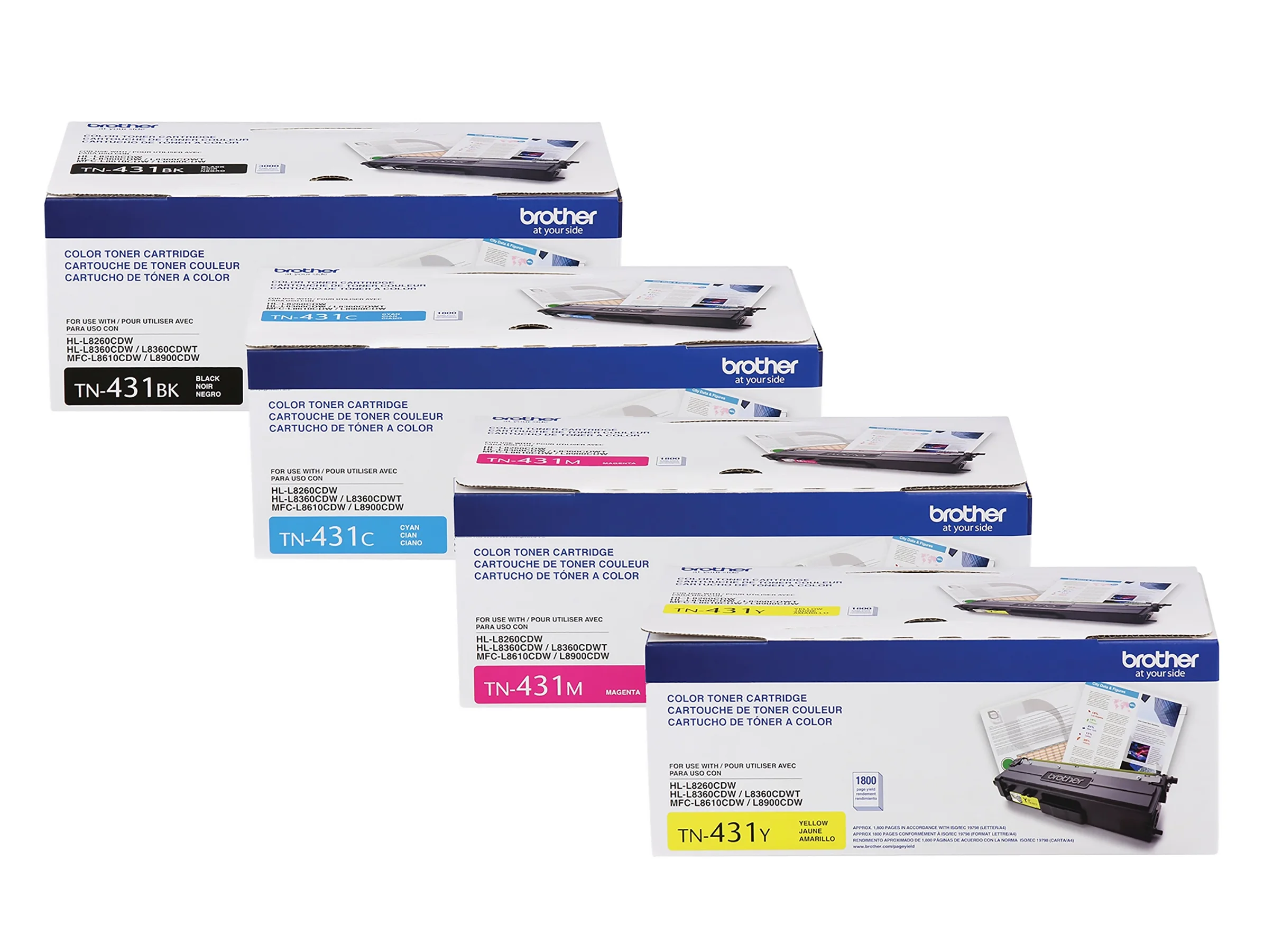 $291.53Genuine Brother TN431 BK/C/M/Y Toner Combo (4) Pack. Includes (1) each TN431BK, TN431C, TN431M, TN431Y
