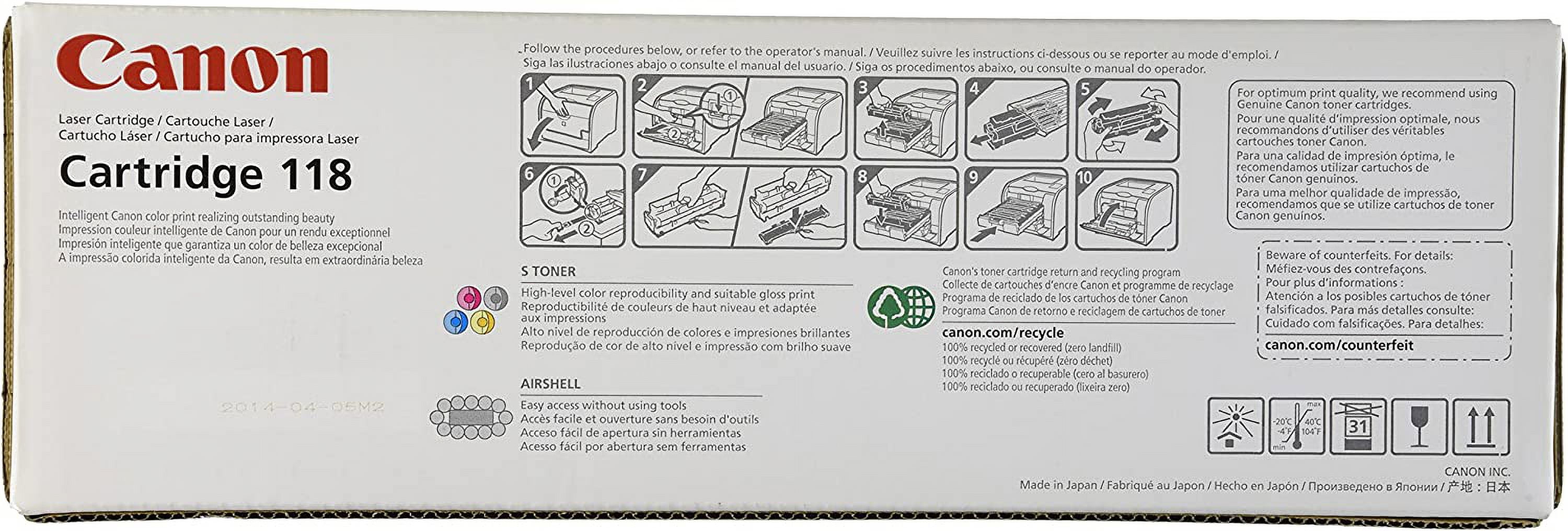 $326.79Brand: Canon Color: Cyan, Magenta, Yellow, Black Features: Toner 045 Bundle comes with 1 of each Cyan, Magenta, Yellow, and Black This bundle contains up to 5, 300 pages of yield (CMY provides 1, 300 pages each, K provides 1, 400 pages), (ISO/IEC standard) For use with the Canon Color image CLASS MF630 series and LBP612Cdw Binding: Office Product Release Date: 25-06-2019 model number: CRG 045 Bundle CMYK Part Number: CRG 045 Bundle CMYK Details: Designed by Canon engineers and manufactured in Canon facilities, Canon Genuine supplies are developed using precise specifications, so you can be confident that your Canon device will produce high-quality results consistently. High Capacity toner options keep up with your busy printing needs, so you have less replacement efforts and more time. The MF630 series and the LBP612Cdw use Canon Genuine Toner, Cartridge 045 CMYK (CMY yields 1, 300 sheets / K yields 1, 400 sheets, ISO/IEC standard) and Cartridge 045 Hi Capacity CMYK (CMY yields 2, 200 sheets / K yields 2, 800 sheets, ISO/IEC standard). EAN: 0660685202535 Package Dimensions: 15.4 x 14.4 x 5.0 inches
