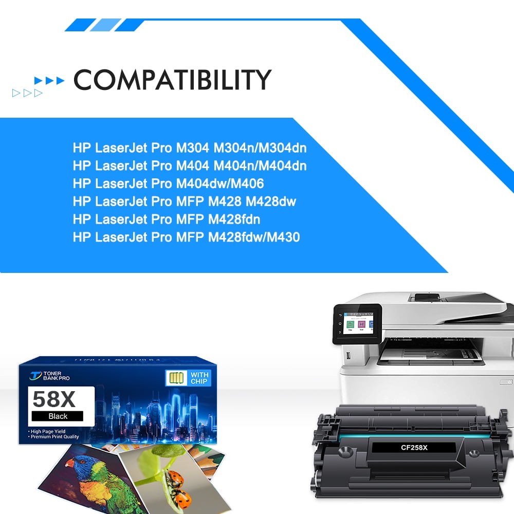 CF258X 58X Black Toner Cartridge (With-chip High-yield ) Compatible for HP 58A 58X CF258X CF258A HP LaserJet Pro M404n M404dn M404dw MFP M428fdw M428fdn M428dw M406dn M430f M404 M428 Printer Ink