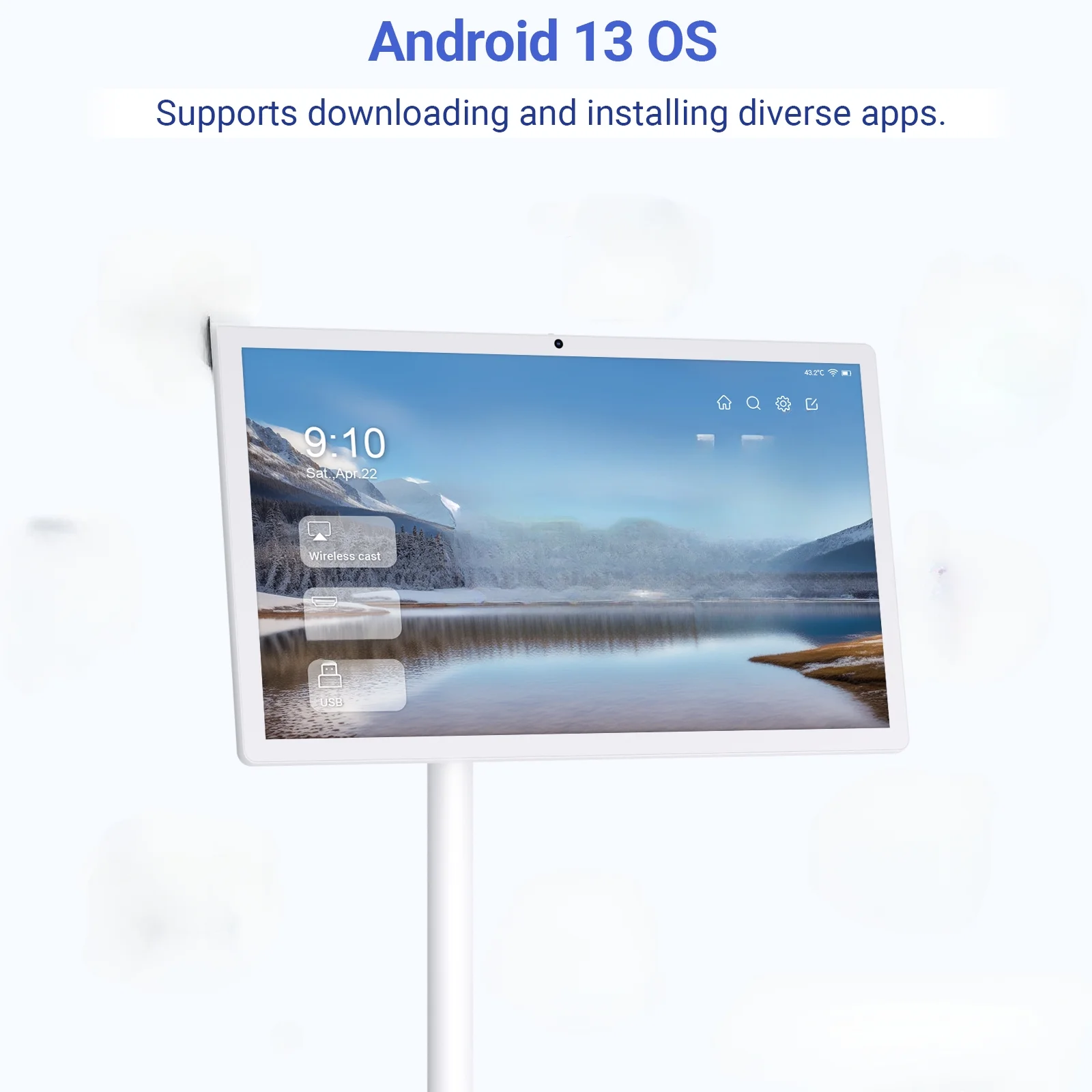 $343.91Rotatable FHD Touch Screen TV Monitor: The 22-Inch in-cell 10 points touch screen has a resolution of 1920×1080 pixels, bringing a high-definition visual experience. Freely switch between horizontal and vertical screen, and can be adjusted to different angles by rotating and tilting as needed. Wireless Portable TV on Wheels: Five discrete wheels at the base of the product, making portable smart TV easy to move to the living room, kitchen, bedroom, or even outdoors. The wireless design with built-in battery allows you to entertain or work anytime and anywhere. Access to Various APP: Android 12 supports downloading and installing any app available on the Google Play Store. With 4GB RAM and 64GB internal storage, you can run all your favorite apps with ease. Enjoy Sharing Life: This portable touchscreen monitor compatible with iOS and Android both, can connect different devices such as iPhone, iPad, or Mac for file transfer and screen mirroring. Safety & Warranty: Contains the necessary accessories for installation: screen panel, stand, round base, installation tool, uers manual, and power adapter. We offer worry free warranty and 24 hours customer service. Wish for you a beautiful life.
