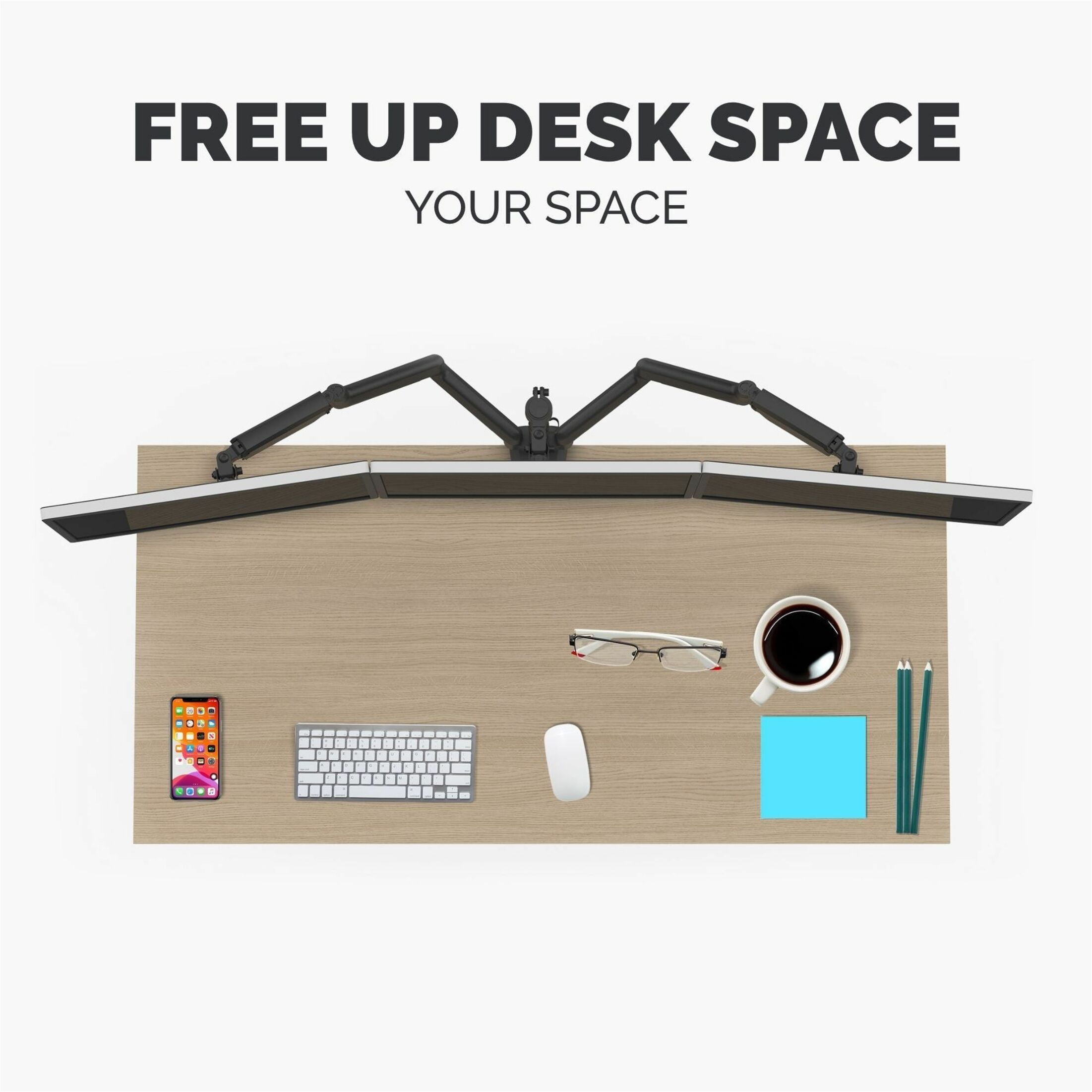 $195.41Platinum Series Triple Monitor Arm features three fully independent adjustable monitor arms for the ideal positioning of your monitors. Innovative gas-spring technology allows effortless monitor adjustment. Intuitive cord-management system helps minimize clutter. Two USB ports located at the base of the product make it easy to connect your favorite devices. Monitor arms are easy to mount. Use a clamp or grommet. Each arm holds a monitor up to 20 lb. It meets VESA mounting standards. Fellowes Platinum Series Triple Monitor Arm, Black