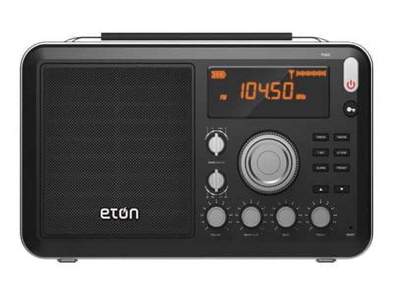$188.34Original price was: $188.34.$94.75Current price is: $94.75.Now broadcasting Field ready and field tested the Etón Field receives most every radio wavelength-AM(MW), FM, and Shortwave (SW)-at home or abroad. And it’s easy to set the station spacing and frequency so your stations come in loud and clear wherever you are.Listen up With high sensitivity, strong anti-interference, low background noise, and even lower distortion, listening on the Etón Field is a real pleasure. Plus, its wide/narrow bandwidth selection improves audio fidelity and minimizes noise. Listen out loud or plug in your favorite headphones.FYI, it’s got RDS The Etón Field radio features RDS for FM. RDS stands for Radio Data System and it enables FM broadcasters to deliver more than just an analog audio signal, but also to transmit digital data, like the station’s call letters, style of music, song title, artist and more. Nice.Wake up With local and world time settings, radio and buzzer alarm clock settings, sleep timer and snooze light, the Etón Field keeps you in time…in any time zone. It even displays the temperature to help you prepare for the day. And if you want to prevent the radio or alarm from turning on all together, just hit Lock.Up to speed When it comes to tuning in to your favorite frequency, you cantake it fast…or slow. The dial-in-dial tuning knob lets you selectyour speed-fast, slow or stop to keep it in a locked position.Field ready The Etón Field radio includes a built-in hand strap for carrying your radio with ease.Get powered up Use 4 D batteries (not included) or plug in the supplied AC adapter into the DC jack for full power. The battery strength indicator on the display will let you know when it’s time for a change.
