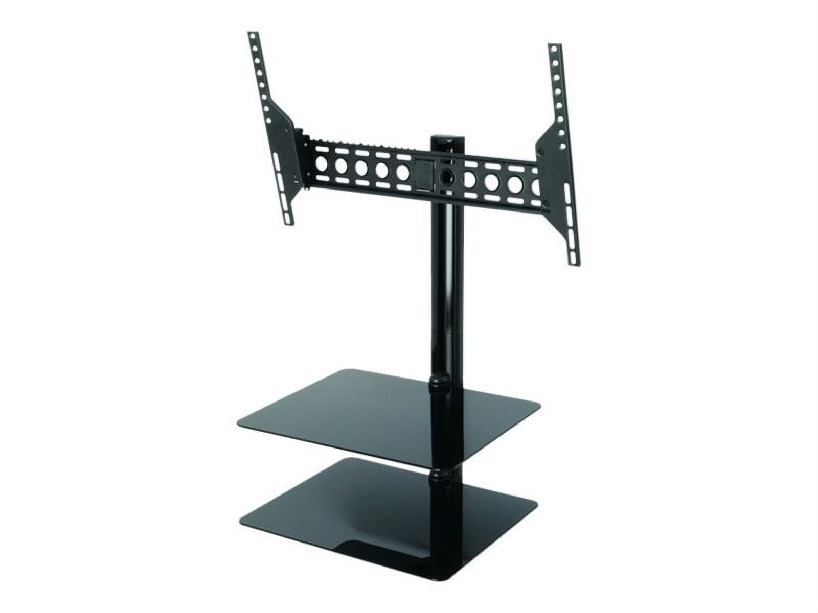 $266.47Simple and elegant in design yet highly functional flat panel TV mounting system. It’s a perfect flat panel display mounting system for boardroom, living room, classroom, lecture hall and exhibition display. Simple and elegant in design yet highly functional flat panel TV mounting system; Its a perfect flat panel display mounting system for boardroom, living room, classroom, lecture hall and trade show display; Accommodate up to 80 plasma, LED/LCD TV or not to exceed 150 lbs; Constructed with heavy gauge steel and extra thick tempered glass in high gloss black finish; Universal flat panel TV mounting system with 15 tilt and pivot 45 capability; Middle shelf is perfect for center channel speaker, game console, ipad or DVD players, endless possibilities; Extra thick tempered glass base with bevel edges comes with both adjustable feet in chrome finish and a set of 4 casters included; Cable management system to organize cables & wires; Contemporary design compliments any room decor; Assembly required. Overall Dimensions: Caster: 38 w x 20 D x 62 H Adjustable feet: 38 w x 20 D x 61 H Usable shelves space: Middle shelf: 18 W x 12 D Base: 38 W x 20 D x 19.5 H