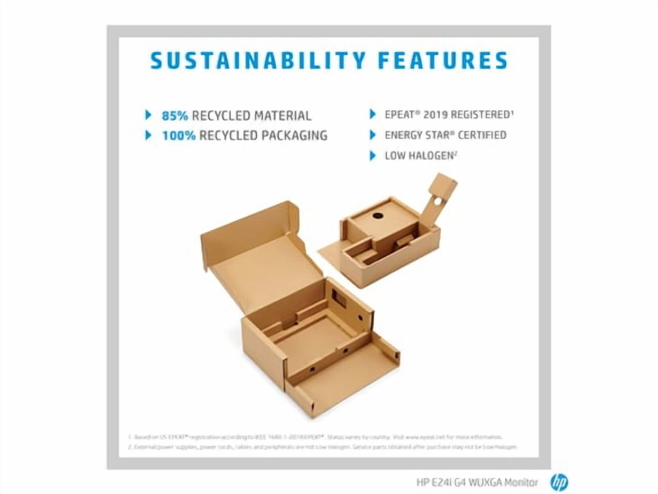 $257.99Original price was: $257.99.$196.81Current price is: $196.81.Overview Intentionally crafted to deliver crisp visuals and personalized comfort, the HP E24u G5 FHD USB-C Monitor redefines flexibility and power, so there’s nothing between you and your best. Stylishly designed with the planet in mind, this display is the perfect fit for both the office and home. On-screen controls; Single Power ON; Anti-glare; Height Adjust/Tilt/Swivel/Pivot; HP Eye Ease What’s in the box? Monitor; Warranty card; Quick Setup Poster; 1 USB Type-C®️ to Type-C cable; AC power cord Disclaimers All performance specifications represent the typical specifications provided by HP’s component manufacturers; actual performance may vary either higher or lower. More accurate colors compared to 72% NTSC. Ergonomic Setup Guide is available through HP Display Center. Host PC requires Windows 10 or higher. HP Display Center is available on the Microsoft store. Single Power On only compatible with HP PCs with Windows 10 or higher. Recycled/Renewable materials made up of 85% ITE, 4.5% Ocean Bound Plastics, and 0.5% coffee grounds. Recycled plastic content percentage is based on the definition set in the IEEE 1680.1-2018 EPEAT® standard. HP defines renewable according to the Global Reporting Initiative Sustainability Reporting Standards. Consists of 30% recycled metals. Recycled metal is expressed as a percentage of the total weight of the metal according to ISO 14021 definitions for metal parts over 25 grams. Extended ecosystem sold separately.