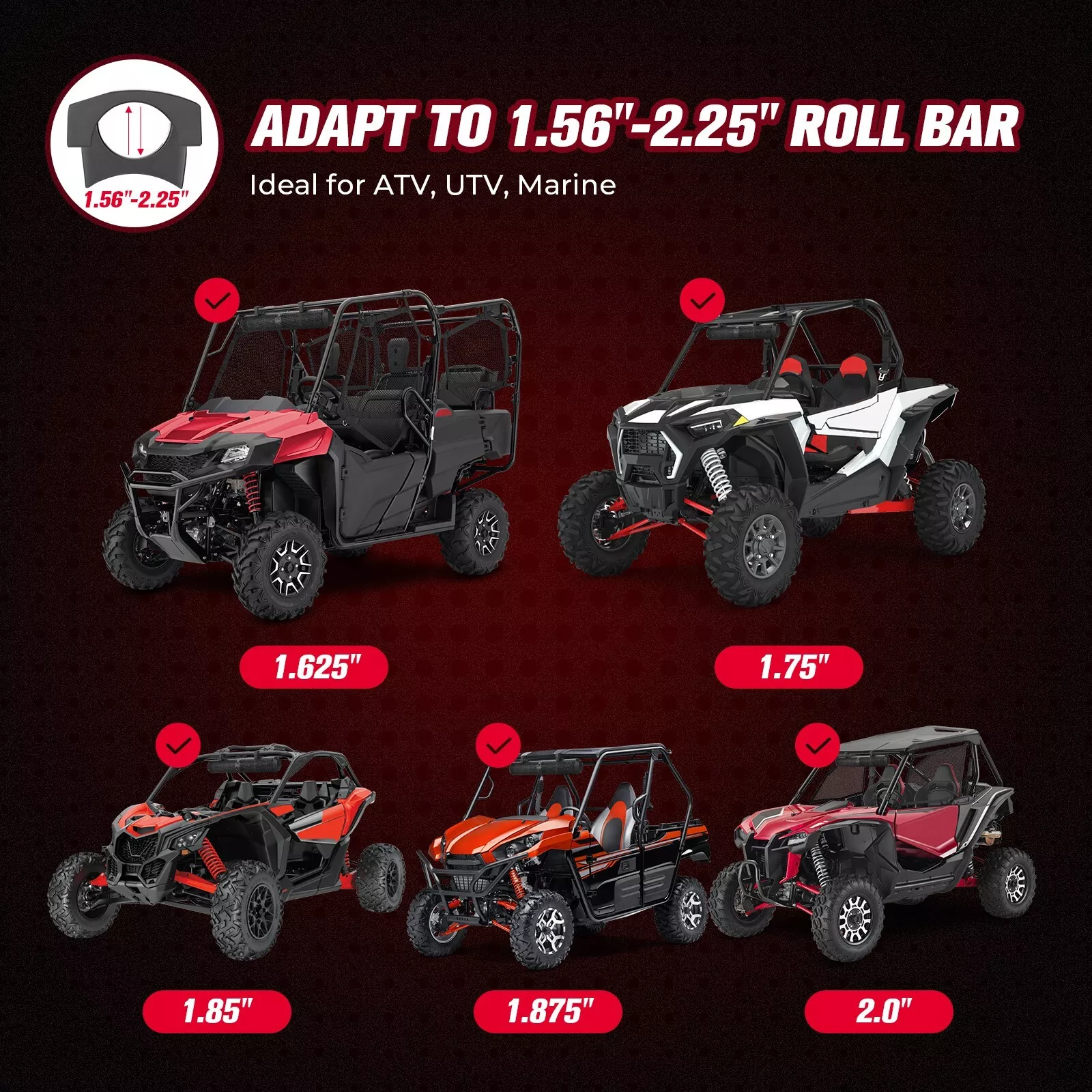 $153.93Original price was: $153.93.$138.45Current price is: $138.45.KEMIMOTO COMPLETE JOURNEY OF DREAMS! Descriptionï¼ Condition: New Dimension: 28.54 x 4.92 x 4.92 inches Power: 12V (10-16V Allowable) Maximum power: 500W Length: 28 inch Speakers Dimension: 4 in Speakers Quantity: 4+2 Material: Heavy Duty 6061 Aluminum Mounting Bracket diameter: 1.56 to 2.25 inches Fitment: Universal for 1.56″ to 2.25″ Roll-Bar/Roll-Cage Diameter (Make sure this will fit for you bike before you buy) UTV/ ATV/ Golf Cart/ Boat Compatible with Polaris RZR / Can-am Maverick / Honda Talon, Pioneer 1000 / Kawasaki / Arctic Cat, etc.. Compatible with Boat, ATV, UTV or other outdoor vehicles. Package: includes a UTV soundbar, adjustable mounting brackets, all mounting hardware, 3.5mm AUX Input, USB Jack, wireless remote control, power extension adaptor accessory, cigarette lighter, user manual, installation tool.