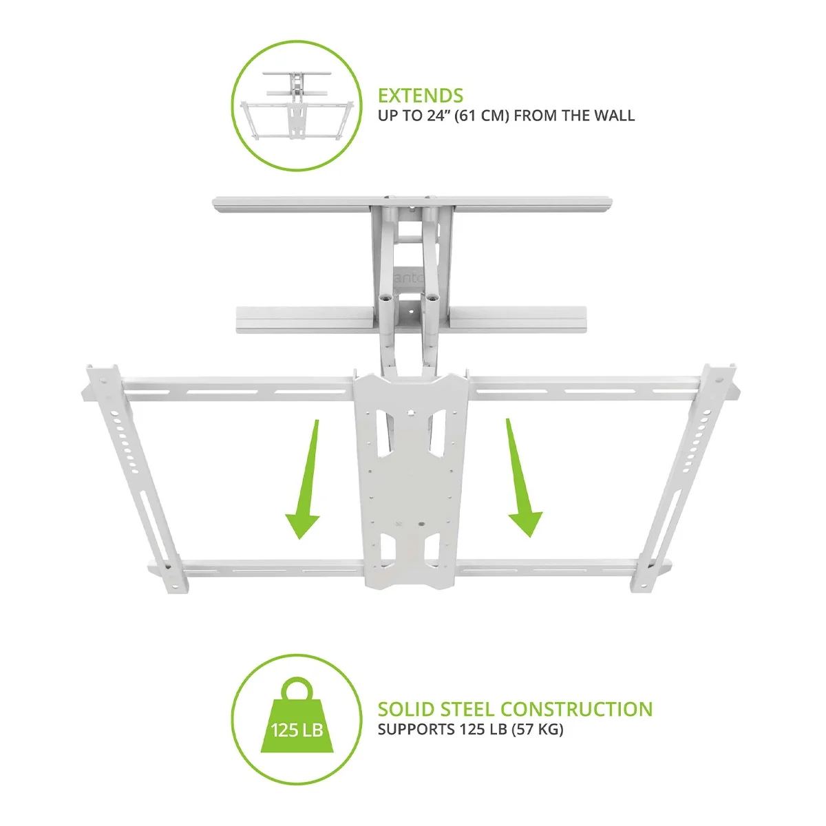 - Extends up to 24” (61 cm) from the wall