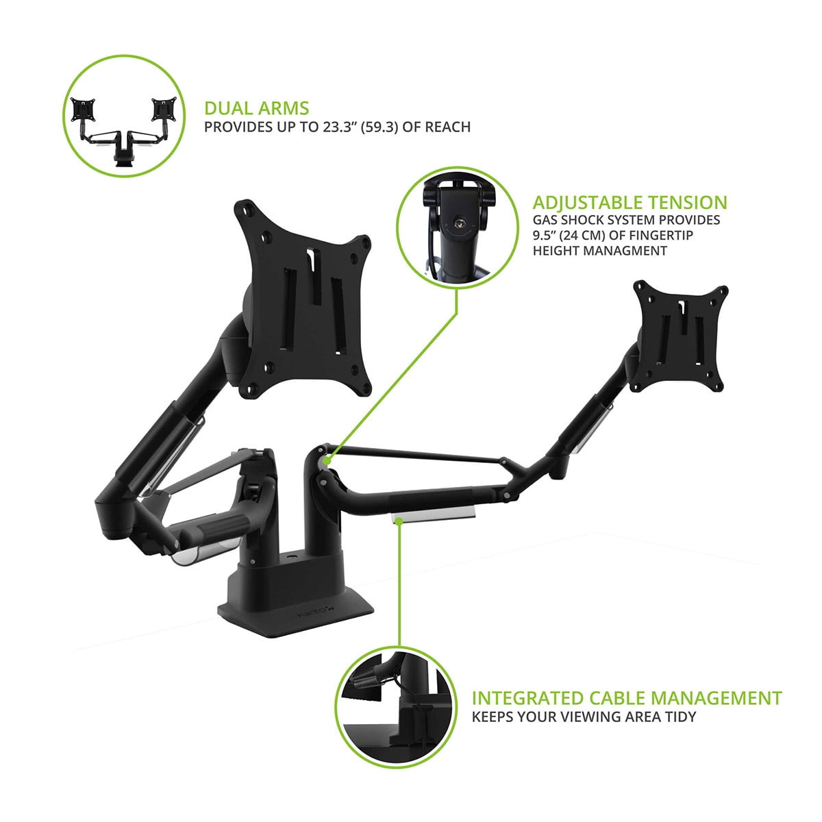 Kanto DMS2000 Dual-Arm Desktop Monitor Mount for 17″ – 32″ Displays with Gas-Shock (Black)