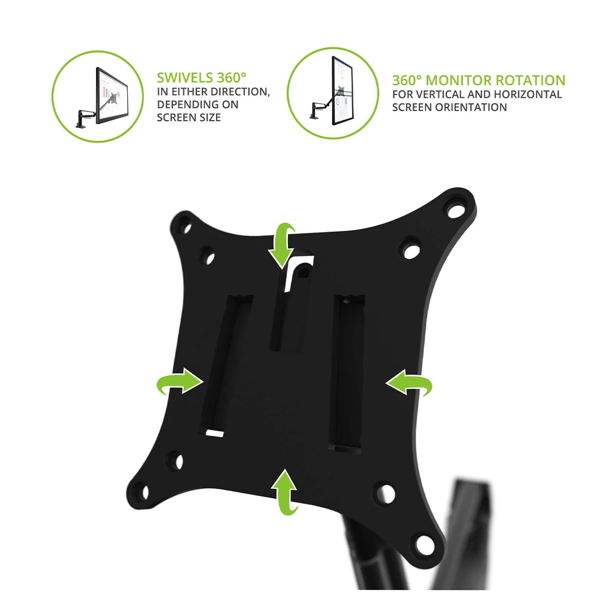 - Accommodates VESA sizes: 100×100 to 400×400