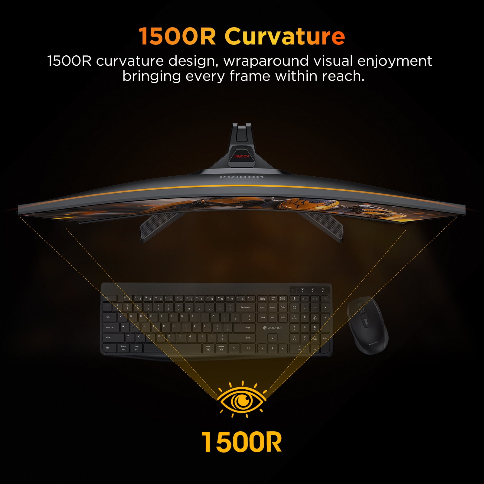 KOORUI 34” WQHD Curved Gaming Monitor, 180Hz/165Hz Ultrawide Monitor, 3440×1440p 1ms(MPRT) HDR400, Black