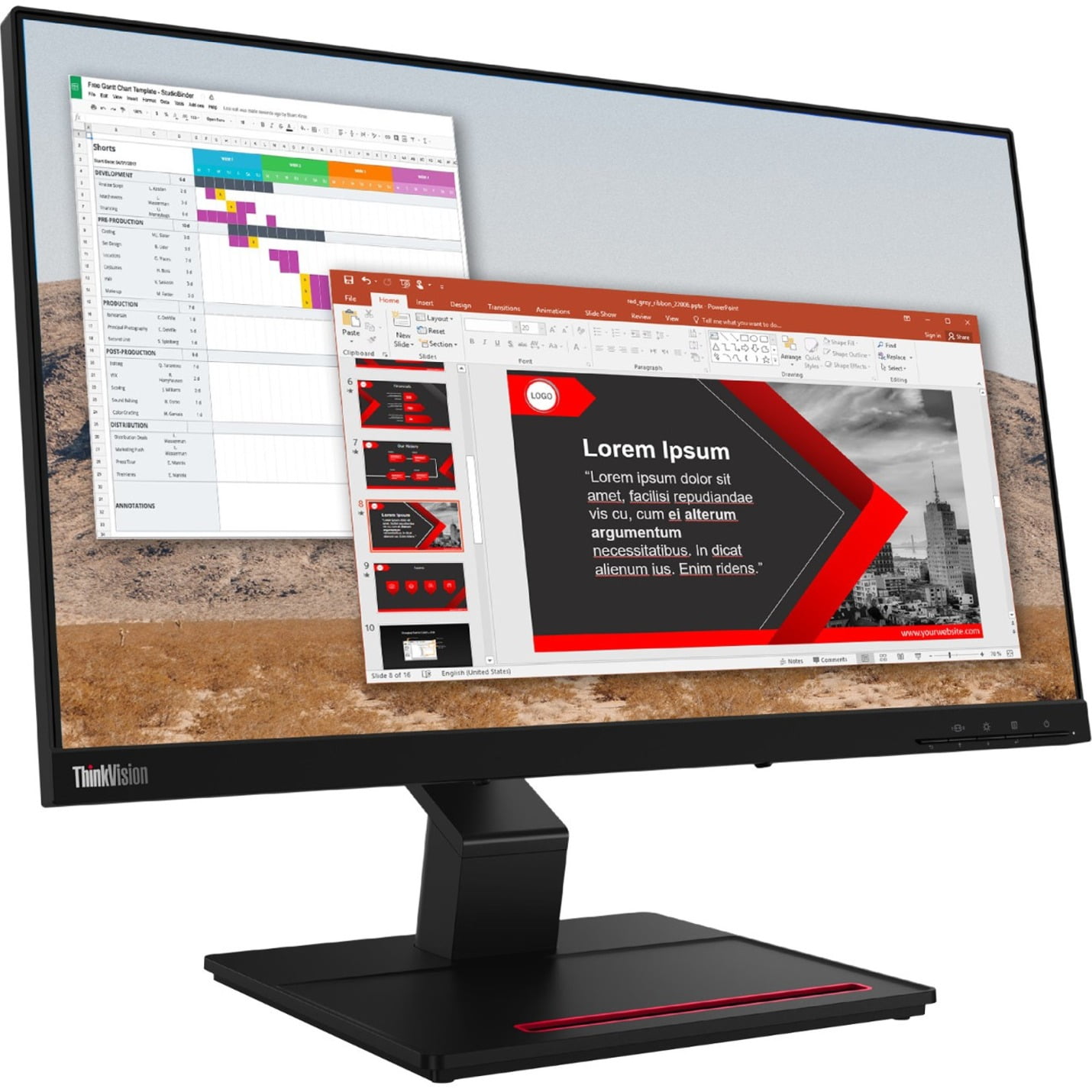 $115.24ThinkVision S24e-20 is anexcellent performer that delivers core functionality with a sleek new form factor. Its 1920 x 1080FHD resolution VA panel up to angles as extreme as 178°.The compact screen head is twiceas slim as its previous generation and sits within a compact 3-side NearEdgeless frame.The stands built-in cable management system keeps wires out of sight and out mind.Which is a good thing because, with HDMI, VGA and Audio Out ports, S24e-20 can connect toa whole range of mission-critical devices. And because your staff are your most preciousasset, S24e-20 has TÜV Rheinland Eye Comfort Certified technology to protect them from eyefatigue. The Monitor thats the Right Tool for the Task | Equip your staff with a monitor that will help power their productivity. ThinkVision S24e-20 is an excellent performer that delivers core functionality with a sleek new form factor. Its 1920 x 1080 FHD resolution VA panel display produces vivid images to every one of your colleagues standing around the desk up to angles as extreme as 178°. The compact screen head is twice as slim as its previous generation and sits within a compact 3-side NearEdgeless frame. Place two side-by-side for a seamless visual setup without a big clumsy column breaking the scene. S24e-20 has your staffs individual comfort in mind. And tilting to the perfect angle, the modern and minimized square-based stand dials up comfort and stability while cutting down its physical footprint to give our people more desk space to get the job done with clean efficiency. Then, it goes further, by incorporating a handy phone rack right inside that small square base, so that the phone is not just cleared off the desk, but its angled perfectly for hands-free use. Cleaning up even more, the stands built-in cable management system keeps wires out of sight and out mind. Which is a good thing because, with HDMI, VGA and Audio Out ports, S24e-20 can connect to a whole range of mission-critical devices such as PCs and even headphones. Of course, not every business scenario calls for a desk. So, with that in mind, you can mount this monitor on the wall through its 100 mm x 100 mm VESA mount capability, which will also hold a Lenovo Tiny or Nano PC discreetly behind the screen. And because your staff are your most precious asset, S24e-20 has TÜV Rheinland Eye Comfort Certified technology to protect them from eye fatigue. This monitor is recognized as the Most Efficient of ENERGY STAR 2021, which means that it meets the rigorous standards set by the U.S. Environmental Protection Agency. | Your 3-side NearEdgeless edge | Make multitasking near-effortless with 3-side NearEdgeless display. Compare files side-by-side on two screens with an almost uninterrupted visual continuity. Share content with colleagues standing up, sitting down or far off to the side as much as 178°; everyone sees the same quality image thanks to a 23.8-inch, FHD 1920 x 1080 resolution, VA panel display. Its 7.1 mm slim head design has less than half the screen thickness of the model it replaces but will still hold a Lenovo Tiny or Nano PC tucked away on its back. | Visibly safe and comfortable | S24e-20 has TÜV Eye Comfort certified technology to protect your employees eyes even during long stretches of work. And for greater user comfort, the screen can tilt on its stand to the perfect angle to suit each individual user. Or simply take the monitor off the desk altogether and place onto the wall with its 100 x 100 mm VESA wall mount capability that can also hold a Tiny or Nano PC unseen behind the screen. | Connection, connection, connection |