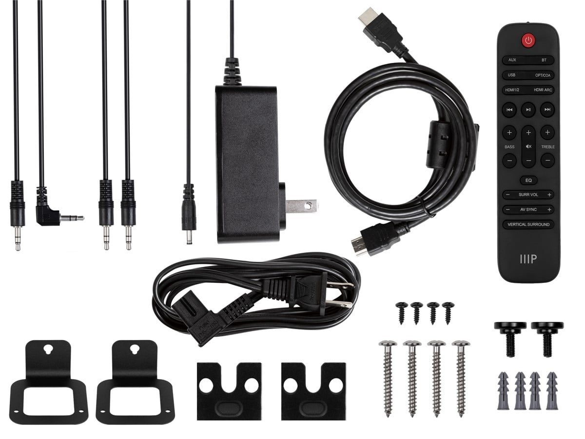 $447.19Original price was: $447.19.$400.80Current price is: $400.80.The Monoprice SB-600 Dolby Atmos 5.1.2 Soundbar delivers a true and powerful Dolby Atmos home theater experience, with built-in Atmos height speakers on the soundbar, wireless satellite speakers, and a wireless 8in subwoofer. Two HDMI inputs, an HDMI eARC output, coaxial and optical digital audio inputs, and a 3.5mm analog audio input allow you to connect your various audio and video devices, while the Bluetooth 4.2 radio and USB input allow you to stream audio from your smartphone or PC. Enjoy total control from the comfort of your easy chair using the included IR remote control. The wireless connectivity ensures a quick and easy setup and a clutter free appearance. The Monoprice SB-600 Dolby Atmos 5.1.2 Soundbar delivers stellar looks and a complete home theater experience.