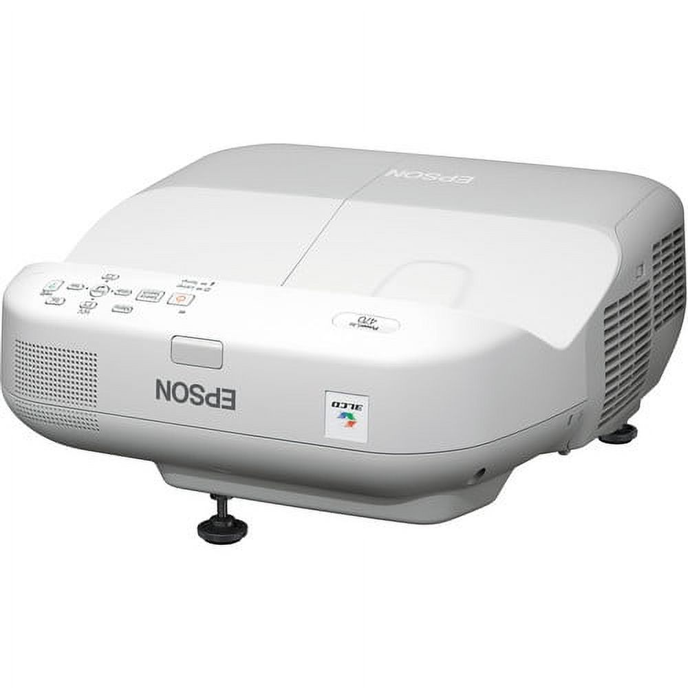 $110.94Epson Powerlite 470 Projector (Epson 470W) 1- Remote control 1- Power cable 1- HDMI cable 1- VGA cable Ultra-short-throw Projector with Comprehensive Connectivity and Premium Audio. The PowerLite 470W ultra-short-throw projector makes it easy to project large, vibrant images from the shortest distance for maximum impact and flexibility. It can be mounted to the wall, making it ideal for use with interactive or standard dry-erase whiteboards. Project a brilliant 80″ image on a wall or screen from approximately 8″ away from the edge of the projector. The 470W boasts a 16:10 widescreen (XGA) aspect ratio for displaying high-definition content and content from widescreen computers. Featuring future-ready HDMI connectivity, it is ideal for classrooms equipped with the latest devices. And, it has convenient networking connectivity so teachers can share content over the network and IT administrators can manage projectors remotely. This high-performing projector is sure to engage any audience. It even includes a built-in 16 W speaker so that every student can hear the audio lesson, without the need for costly external audio equipment. • Projection System: 3LCD, 3-chip technology Native Resolution: 1024x 768 (XGA) Color Brightness: 2600 lumens White Brightness: 2600 lumens Model: V11H455020 Bright and Colorful Features 2600 lumens of color brightness (color light output) and 2600 lumens of white brightness (white light output) WXGA Resolution 1024 x 768 widescreen resolution Ultra-Short Throw Projector Can be mounted only 9″ away from the board for a projected image as large as 87″ diagonal – with no shadow interference. HDMI Connectivity Includes all-digital, HDMI audio and video connection, for HD quality with just one cable