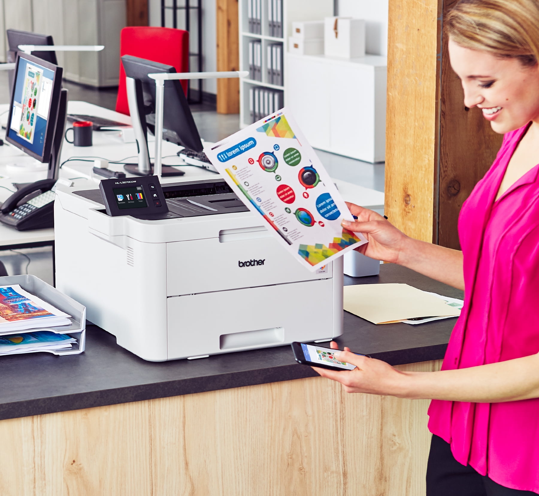 $206.38The reliable Brother RHLL3270CDW compact digital color refurbished printer is a great choice for the busy home or small office looking for laser printer performance. Quick print speeds of up to 25 pages per minute plus manual feed slot accommodates varied printing needs and can handle a variety of paper types and sizes including card stock, envelopes and more. Connect with versatile options including built-in wireless, Ethernet or USB interfaces and print wirelessly from mobile devices(1). The 250-sheet capacity adjustable paper tray helps improve efficiency with fewer refills and handles letter or legal sized paper. Automatic two-sided printing helps save on paper costs. Save time by creating custom shortcuts on the 2.7” color touchscreen which also enables you to print directly from popular cloud apps including Dropbox, Google Drive™, Evernote, OneNote and more. Brother Genuine high-yield replacement toner cartridges help lower printing costs.