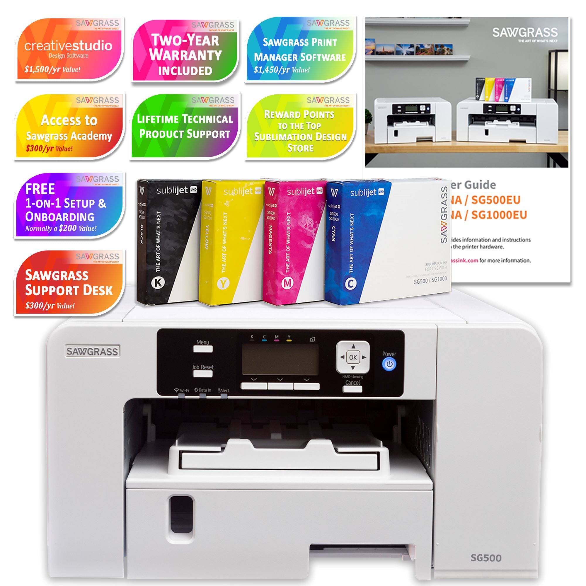 Sawgrass SG500 Starter Bundle Color Sublimation All-in-One Printer with Ink & Paper