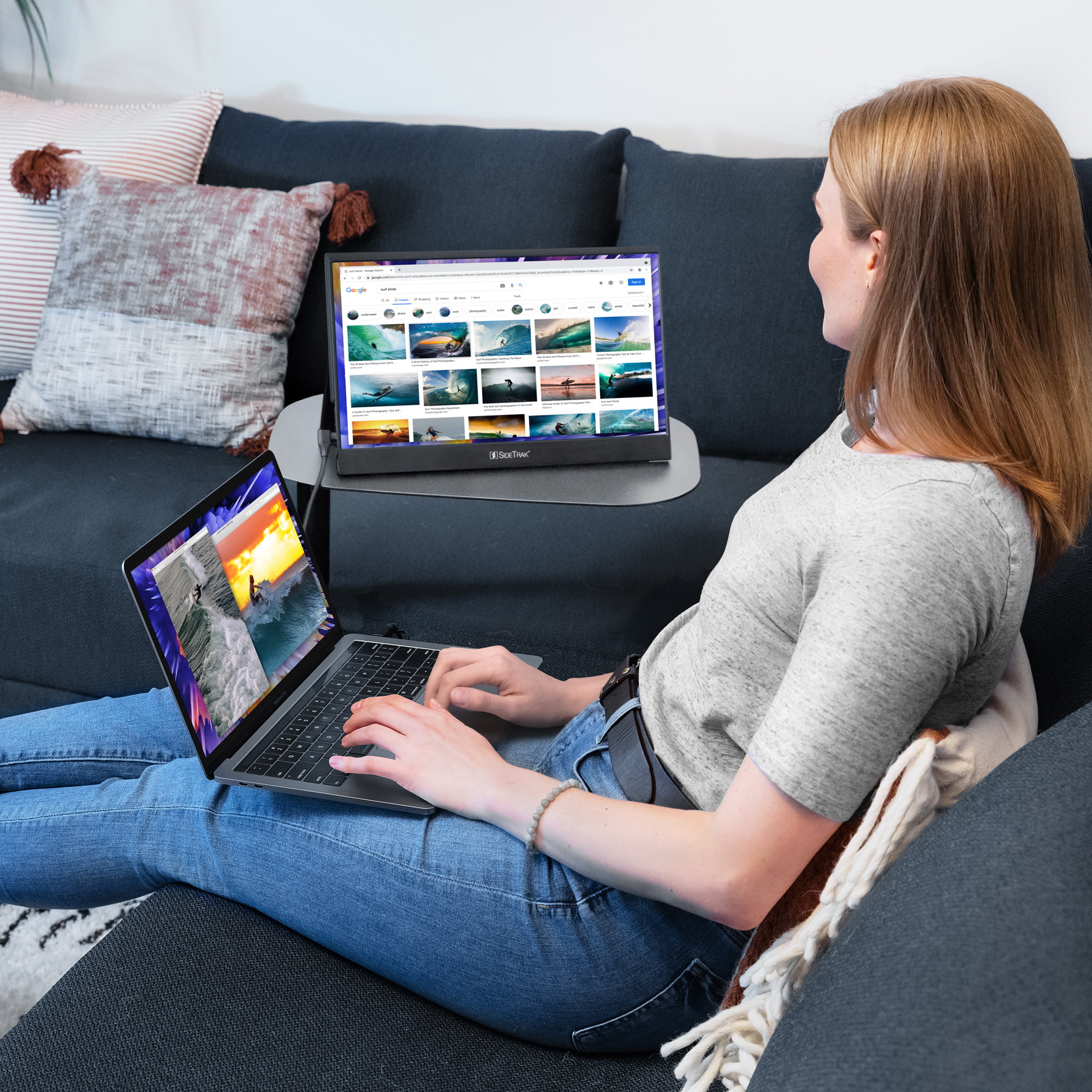 $111.79Instantly double your laptop screen workspace with this game-changing attachable portable monitor technology! SideTrak Slide is a 12.5” FHD IPS monitor that magnetically attaches to the back of your laptop with metal plates so you can effortlessly work anywhere with two screens. SideTrak Slide is the most portable monitor on the market and the perfect laptop companion whether you are working from home, in the office, or on-the go! Whether you are on a zoom call or working on an important project, two screens allow you to easily reference documents and take notes with more screen real estate. Enjoy a change of scenery without sacrificing productivity. This portable monitor stays attached to your laptop and doesn’t require a table so that you can work with two screens at a desk, on a couch, or outdoors. Set up your dual monitor workspace in seconds and easily move it with you throughout the day. SideTrak Slide’s lightweight, durable, and slim design is built for your life on-the-go! It fits in most work bags so that you can carry this attachable portable monitor between your home and office. Conveniently share your amazing ideas with coworkers and clients! This portable monitor is designed to mirror your laptop display and rotate 270°. This portable monitor requires a free DisplayLink download and is compatible with most devices and operating systems including Mac, PC, Chrome, PS4, Xbox, & Switch. Your laptop should be at least 11.25″ x 8.5″ in size and cannot attach to any laptop with a kickstand. Features And Specifications • Overall Dimensions: 12.5″W x 0.7″D x 8.5″H • Refresh Rate: 50/60 Hz • Response Time: 30 ms • Brightness/Luminescence: 300 cd/m • Aspect Ratio: 16:9; Contrast Ratio: 600:1 • Color Depth: RBG 6-bit+Hi-FRC color depth • Power Consumption: 4.5W • Panel Type: IPS; Resolution: 1920 x 1080; PPI: 176 • Display Link Chipset: DL-4120 • Connection Type: USB-C and USB-A (through adaptor)