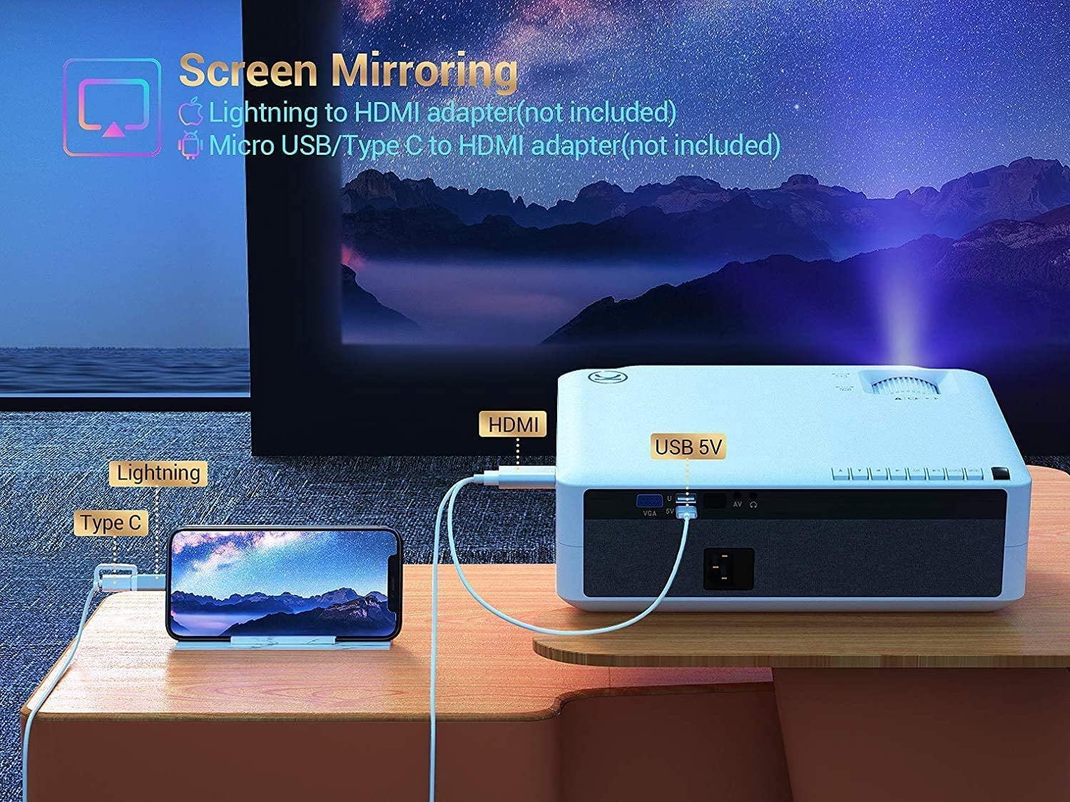 $111.79Thank to the full HD display, focusing function, HI-FI stereo sound, excellent quality, and reasonable price. V610 Home video projector is the best choice. Features: Big Screen Home Theater – Enrich your home entertainment by enjoying a cinematic experience. It’s also great for watching sports games, holding parties, or simply parent-children interaction. The video projector will bring lots of fun to your family and friends. Do Not Hurt The Eyes – The light from the LED screen will directly affect our eyeballs, especially the microwave blue light. The video projector is imaged by the principle of diffuse reflection, with soft pictures, low radiation, caring for fragile eyes. 50,000 Hours Lamp Life – With an extended LED lamp life of an impressive 50,000 hours, even if you watch a 2-hour movie every day, this led light source projector would last at least 20 years. It consumes less energy making your life more environmentally.