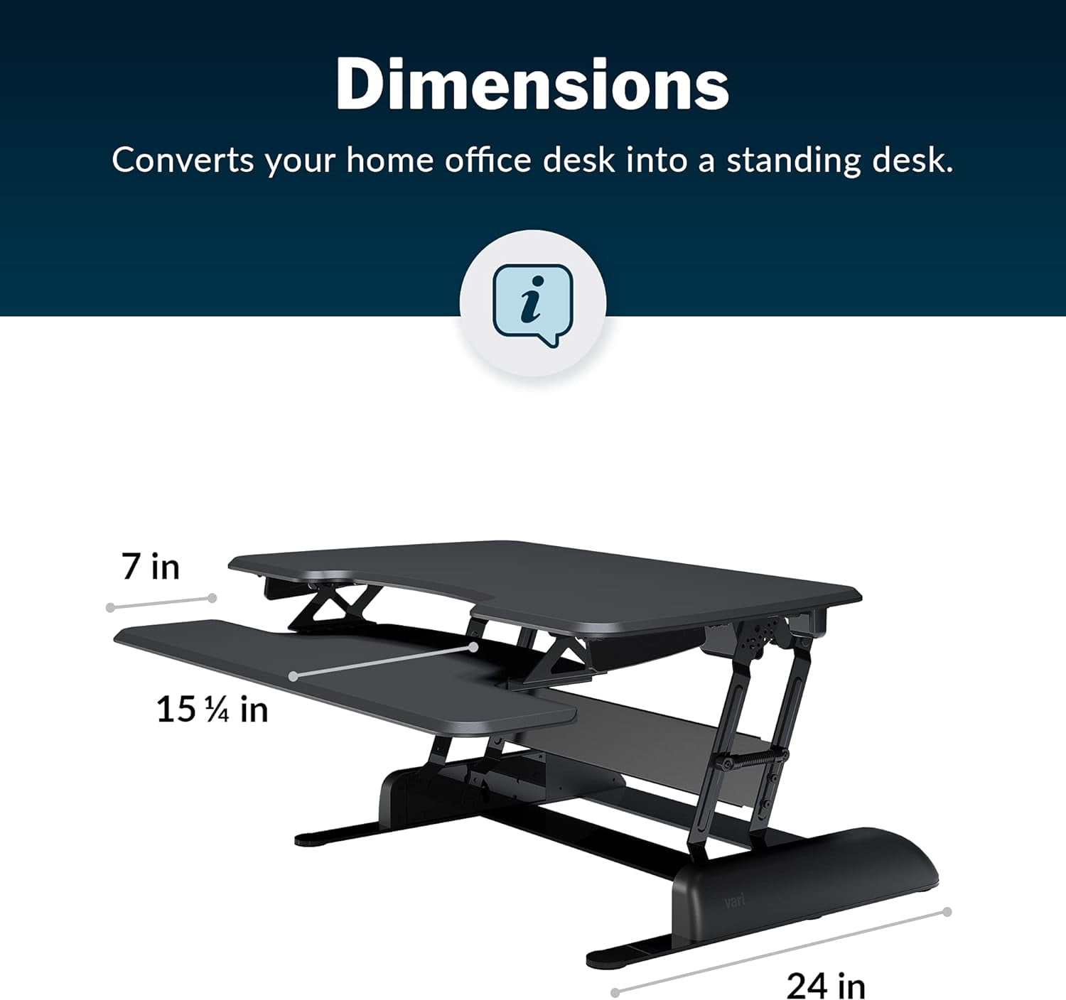 $257.99Transform your home office with this adjustable rising desk converter! Whether you want to sit or stand, our adjustable two-tier monitor riser helps to add more movement to your workday. This monitor riser desk has a 30” wide work area to accommodate your gadgets. Its lower deck has room for your keyboard and mouse, while the upper deck is perfect for your computer or laptop and other accessories. This adjustable desk is designed to create a functional sit stand workspace at home, even with limited room. The vertical, straight-up-and-down lift direction helps save space, making it the ultimate monitor stand for small spaces and narrow home office desks. Get up and stand up for a better work environment with the Vari Sit Stand Desk Converter! Our lift desk is engineered for your safety and ease of use. The ergonomic single-handle spring lift allows for quick and easy height adjustment. Raise or lower these rising desks for home office with minimal effort with the 11 height settings. This affordable adjustable standing desk can be easily assembled in minutes. Simply attach the keyboard tray with a screwdriver, place it on your existing desk or table, and you’ll be up and working more productively in no time. Our easy-to-attach legs have a patent-pending design that lets you assemble this stand up office desk in 10 minutes or less with no special or complicated tools. This gaming desk also has a split-top 3D laminate desktop surface that is durable and easy to clean. Create happier and healthier workspaces with this stand up desk. Add the Vari Sit Stand Desk Converter to your cart now!