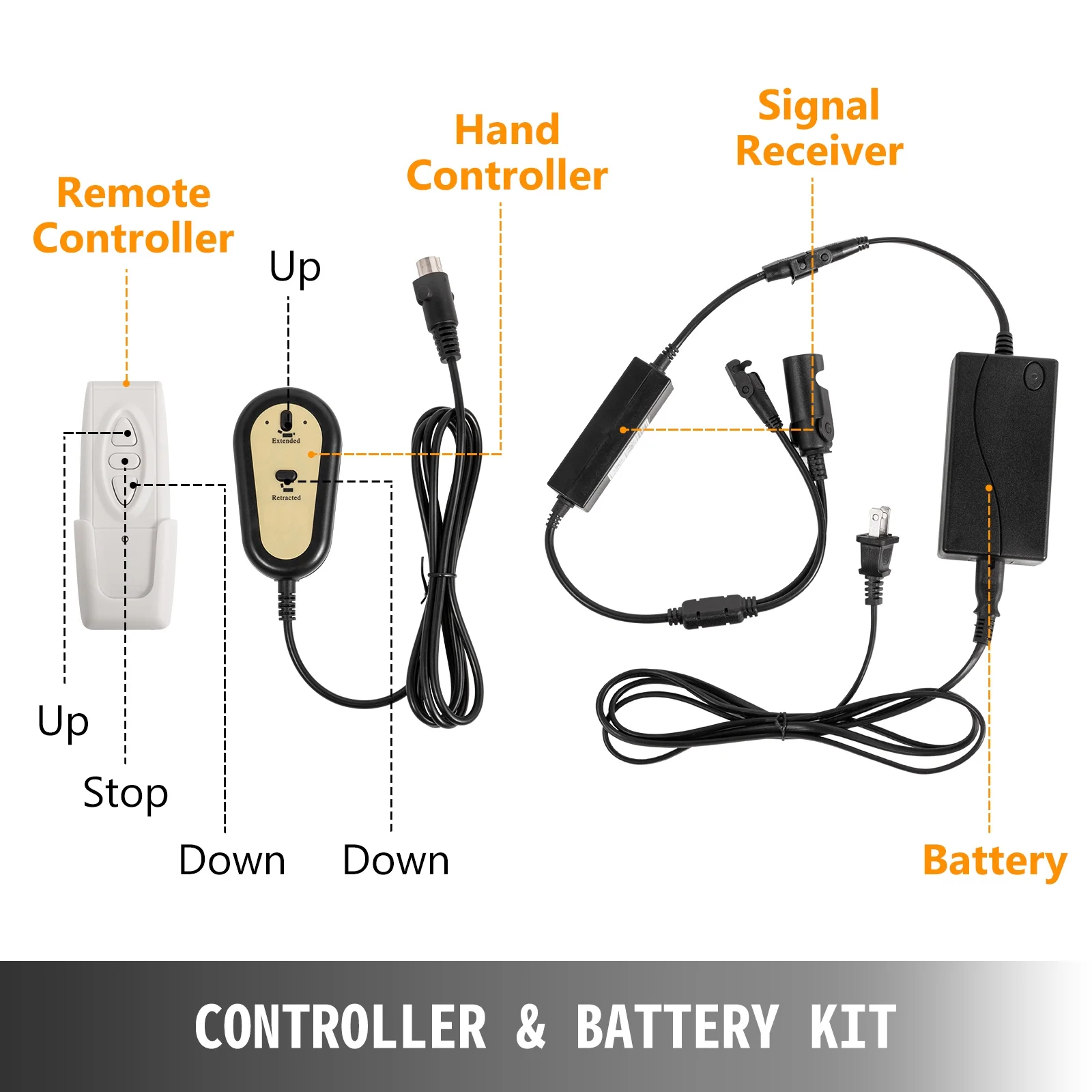 1 x Motorized TV Lift1 x long-distance regulator1 x Hand Controller1 x Screw Kit1 x User Manual - Electronic