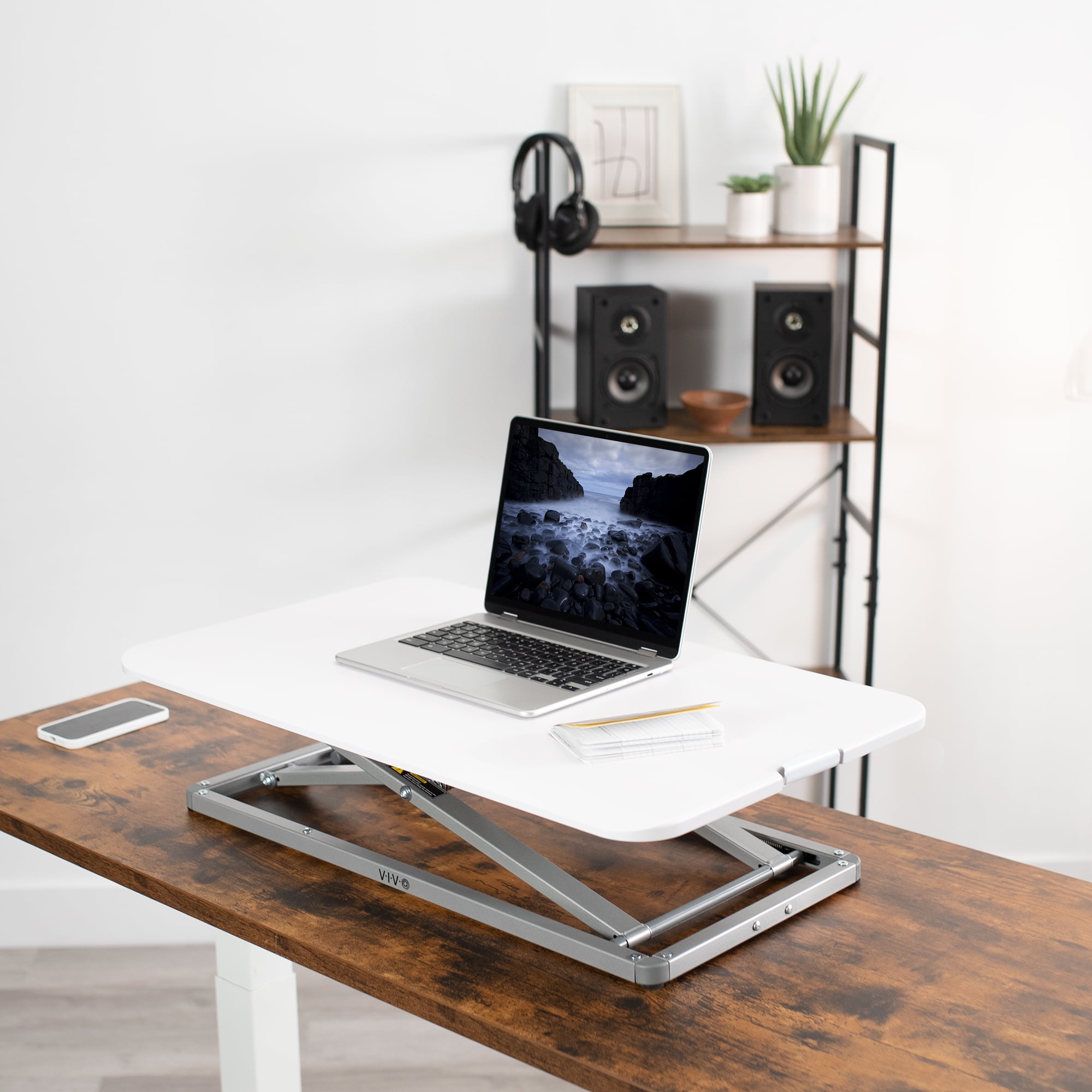 $111.79Enhance your work experience with the White Desk Riser (DESK-V000SW) from VIVO! Transitioning between sitting and standing throughout the long work day provides numerous health benefits for the body such as increased blood flow and reduced aches and pains. This solidly built desktop supports up to 26 lbs, easily holding multiple monitors or laptop and monitor combinations. It also features pneumatic spring lift that allows simple and smooth height adjustment (4.8” to 19.6”) at the squeeze of a handle. The dual-tiered design allows you to customize your work area to create the workflow you need, and the keyboard tray is removable using the provided hex tool. All necessary hardware and instructions are provided so you can get your new desk riser assembled and workspace organized in no time! Specifications Color: White Type: Manual (Pneumatic Spring) Desktop Dimensions: 32” x 15.8” Keyboard Tray Dimensions: 26” x 11.9” Base Dimensions: 28.5” x 16.2” Height Adjustment Range: 4.8” to 19.6” Desktop Weight Capacity: 26 lbs Keyboard Tray Weight Capacity: 5 lbs Tabletop Thickness: 0.5”