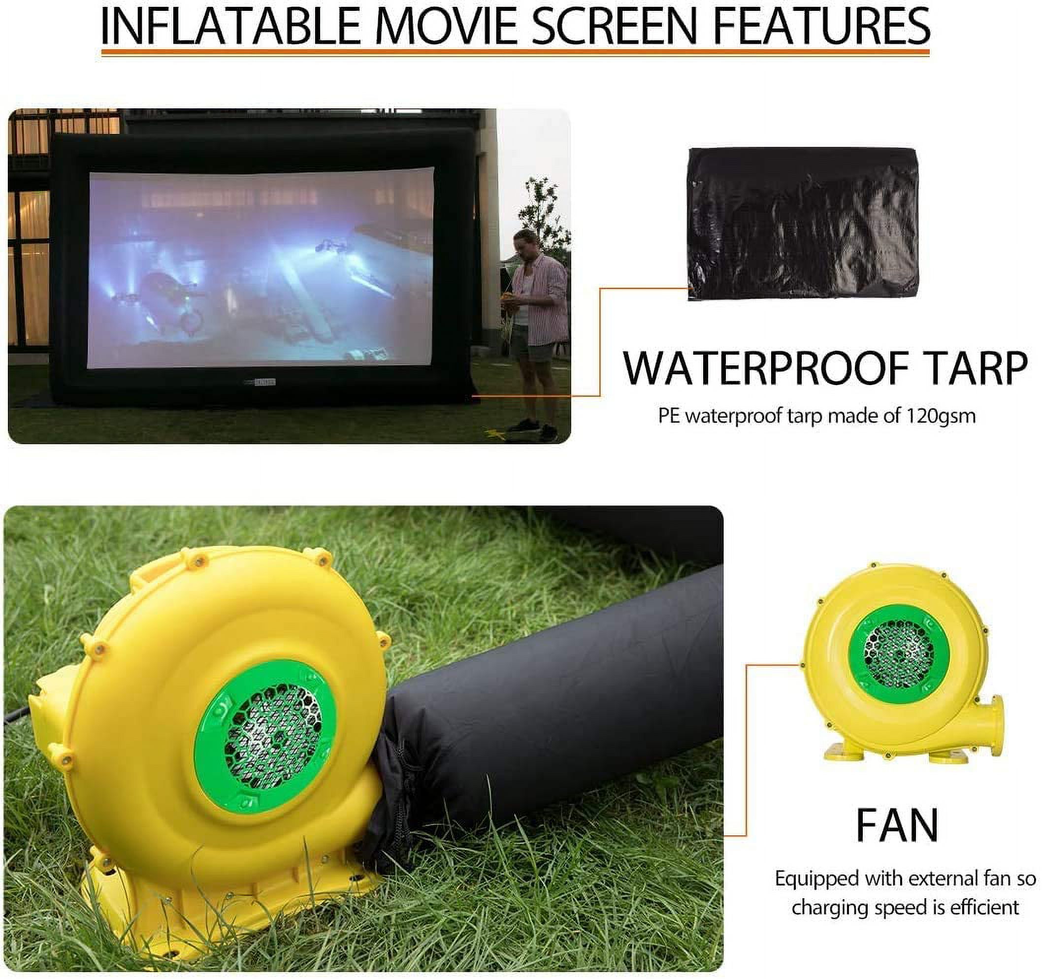 $171.99VIVOHOME 16ft Outdoor Inflatable Movie Projection Screen Get ready for an amazing movie night this weekend! Set up a projector screen anywhere with the VIVOHOME Inflatable Projection Screen. Excellent for big groups watching movies outdoors or use at home in the backyard, this large screen will provide a sturdy and bright surface for your projected video. Easy to set up and take down and secure in the wind, this screen will be the perfect addition to your party or warm evening outdoors. External Blower Made of high quality, durable and waterproof 210D oxford cloth, suitable for any season. Professional 110V external blower inflates the movie screen quickly and quietly, keeping it inflated throughout the show. Portable Storage The durable and portable bag is made of high-quality durable 420D oxford cloth with a zipper for easy storage and carrying. A nice addition to resorts, outdoor parties, and special events. Extra Stability Equipped with tethers and yard stakes for setting up and take down and increasing stability, preventing the screen from falling down, ensuring a good experience for the audience. Enjoy watching your favorite films on the big screen anytime with your family and friends in the backyard. A nice addition to resorts, outdoor parties and special events Made of high quality, durable and water resistant 210D oxford cloth for all season use Quiet fan pump included can blow up this movie screen in minutes and keeps it inflated throughout the show The removable projection surface make it easy to clean and maintain your screen. It is recommended that you put the screen in the storage bag separately when not in use to avoid it getting it soiled. Front and rear projection capabilities, high-quality front and rear projection materials allow the projector to be placed behind or in front of the screen for greater flexibility. Product and Package Information Mounting Type: Inside Mount,Outside Mount Material: Oxford cloth Brand: VIVOHOME Item Weight: 24.2 Pounds Item Dimensions LxWxH: 172.8 x 73.2 x 111.6 inches Note: After use, please remember to store the white screen and the black inflatable column separately to prevent the screen from being stained. 1 x Inflatable screen 1 x Blower 1 x Waterproof tarp 2 x Repair patch 6 x Ground stake for fixing the inflatable screen 18 x Ground stake for fixing the cloth mat 6 x Tether 1 x Carry bag 1 x User manual