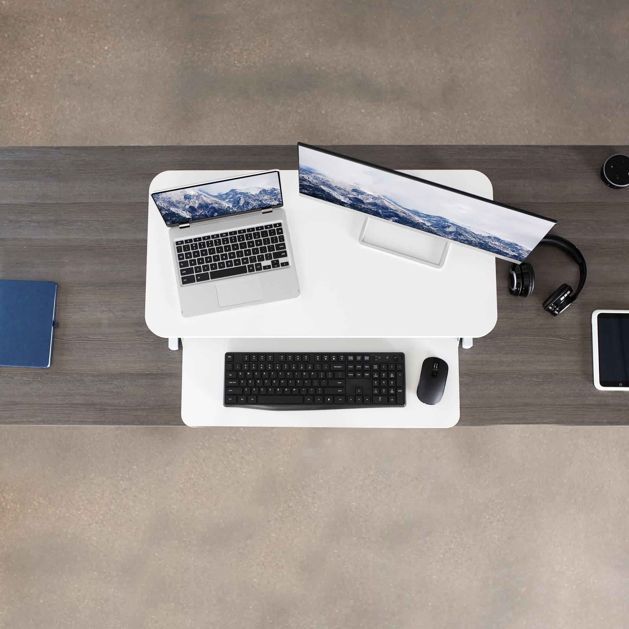 VIVO White Ultra Slim 26″ Desktop Converter, Sit Stand Tabletop Monitor Riser