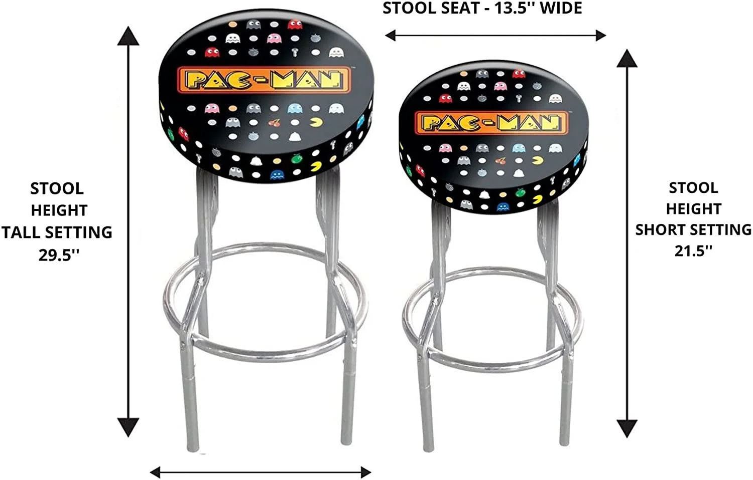 $109.00Okay, are you sitting down for this? You will be! This officially licensed PAC-MAN™stool is the perfect complementary piece for your Bandai Namco Entertainment Legacy Edition home arcade cabinet .Adjustable from 21.5” to 29.5” with sturdy extending legs, chrome-plated steel frame, and high-density foam padded seat, it’s vibrant, stylish, comfortable, and oh-so nostalgic. So grab this seat retro-gamers. It’s a must-have for Arcade1Up AND Bandai Namco Entertainment fans, and most definitely a conversation piece in any setting! Each stool has sturdy chrome legs and thick, comfortable foam padding for those long gaming sessions. Comfortable while you play, stylish while you’re away.