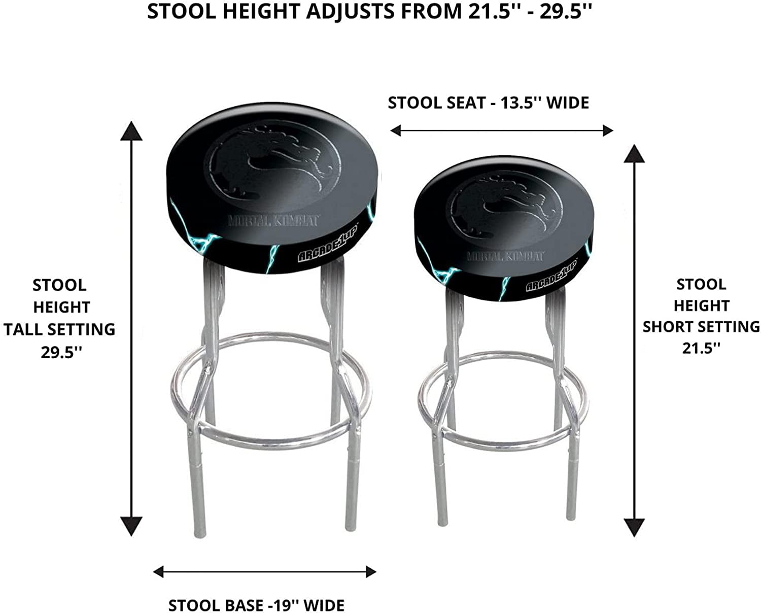 $77.39Okay, are you sitting down for this? You will be! This officially licensed Mortal Kombat™ stool is the perfect complementary piece for your Midway Legacy Edition home arcade cabinet from Arcade1Up. Adjustable from 21.5” to 29.5”with sturdy extending legs, chrome-plated steel frame, and high-density foam padded seat, it’s vibrant, stylish, comfortable, and oh-so nostalgic. So, grab this seat retro gamers. It’s a must-have for Arcade1Up AND Midway fans, and most definitely a conversation piece in any setting! Each stool has sturdy chrome legs and thick, comfortable foam padding for those long gaming sessions. Comfortable while you play, stylish while you’re away!
