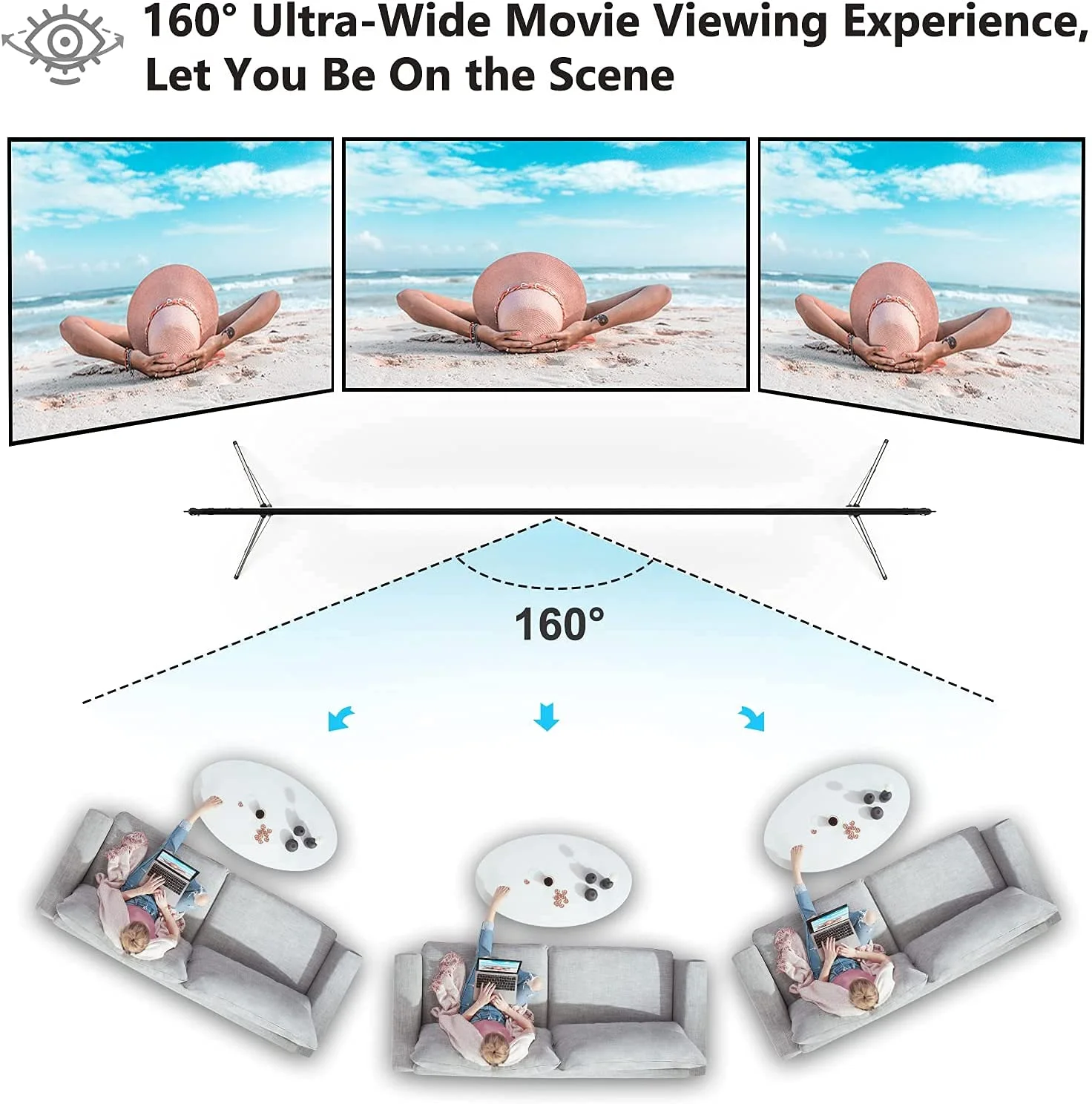 $51.59• 【Assemble Effortlessly】- Tagital outdoor movie projector screen comes with a foldable stand, which can be easily assembled and disassembled without any tools. All you need to do is unfold the stand and the elastic cord inside will drive the stand to connect quickly and automatically, so you can set it up easily in less than 2 minutes. You will feel that it is convenient and to get rid of the trouble when you use it. • 【Excellent Projection Display】- 120-inch movie projector screen with stand, 16:9 aspect ratio, and 160 degrees wide viewing angle. The Tagital portable projector screen will become your projector and your best friend. The movie screen is designed to provide clear, high-resolution images, rich colors, and an excellent viewing experience in different viewing positions. When using it, you’ll feel like you’re in a movie theater whether you’re by yourself or sharing a fun time with family and friends. • 【High-quality Materials】- The wrinkle-resistant projector screen is made of natural polyester fabric.When be long storage or used that can eliminate wrinkles in seconds with an iron, while cleaning up stains and dust by simple wiping with a damp cloth. Tagital video projector screen is thicker than other regular screens, and that supports front and rear projection, which more convenient for you to use and get rid of the annoyance of moving sight that affects the viewing experience. • 【Lightweight and Durable Material】- Tagital portable movie screen with a very textured aluminum stand that is smooth and comfortable to touch. The stand is not only advanced and beautiful but also lightweight and durable. The rust-free aluminum material and the movie projector screen pairing with 9 grounding spikes and ropes make it to sturdy enough to be used and resist bad weather in outdoor. • 【Easy to Carry】- The foldable 120″ projector screen can be folded into 22*14 inches and fits compactly and securely into the matching carrying bag along with the projector stand and stand’s accessories. The movie projector screen with stand is perfect for outdoor, home theater, camping, etc. You only need one hand to lift the 9 pounds projection screen and carry it anywhere you want to go to start your movie journey. Tagital 120” Portable Projector Screen with Stand The self-supported projector screen for outdoors and indoors Unique Tripod Design: Two tripods offer a self-supported and strong stand for this outdoor screen for movies. They’re foldable and can be easily unfolded and set up with only one screw for each side. Easy to Set Up: There’s an elastic rope between each two of the poles, convenient for connection and not easy to fall apart as well. It takes only around 5 mins to assemble the projector screen 120 inch. Lightweight and Portable: At only 9 lbs, this lightweight projector screen and stand can be easily folded into the attached compact bag, perfect for outdoor events like camping. Large Size with Great Image Quality: With the 120-inch diagonal size and excellent image quality, this projector screen outdoor will help you create an authentic-looking theater anywhere. Easy to Store and Maintain: Made of durable polyester fabric, this outdoor home theater screen doesn’t wrinkle easily, and it’s very easy to clean with water and soap. One for All: This 120 inch projector screen can be used for movies, camping, picnics, birthdays, pool parties, and presentation. Compatibility: This projector screen for outdoor movies is compatible with LCD, DLP, and LED projectors. Specs Viewing Diagonal: 120 in (16:9) Projection: Front and Rear Product Size (Fully Assembled): 107 x 71 x 17 in Carrying Bag Size: 20.2 x 10.2 x 3.3 in Weight: 9 lbs.