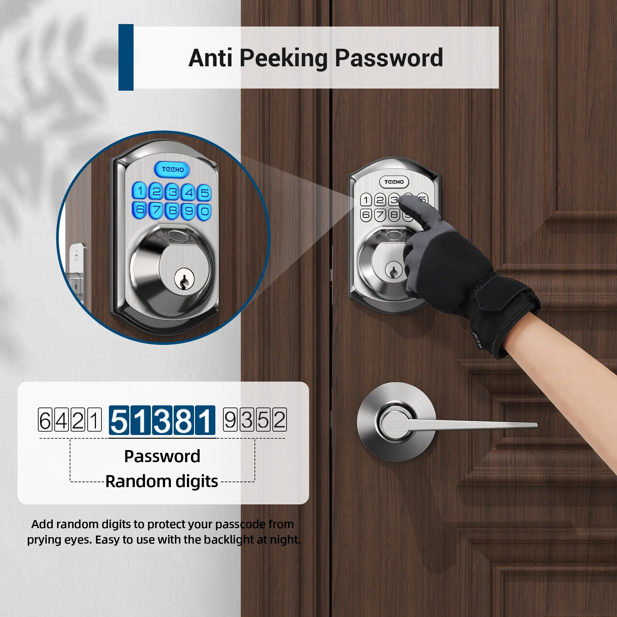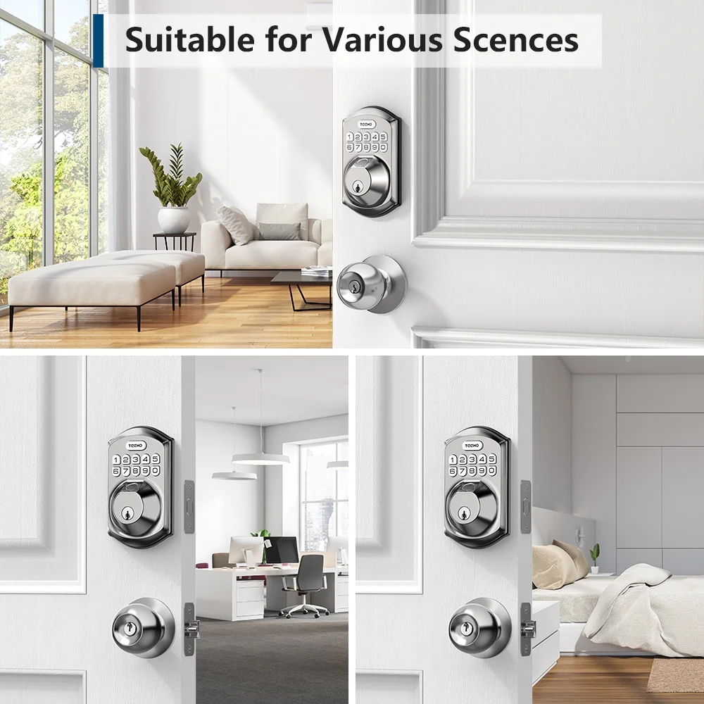 Teeho Fingerprint Keypad Keyless Entry Smart Door Lock, Electronic Deadbolt, Easy Installation, Satin Nickel, Size: